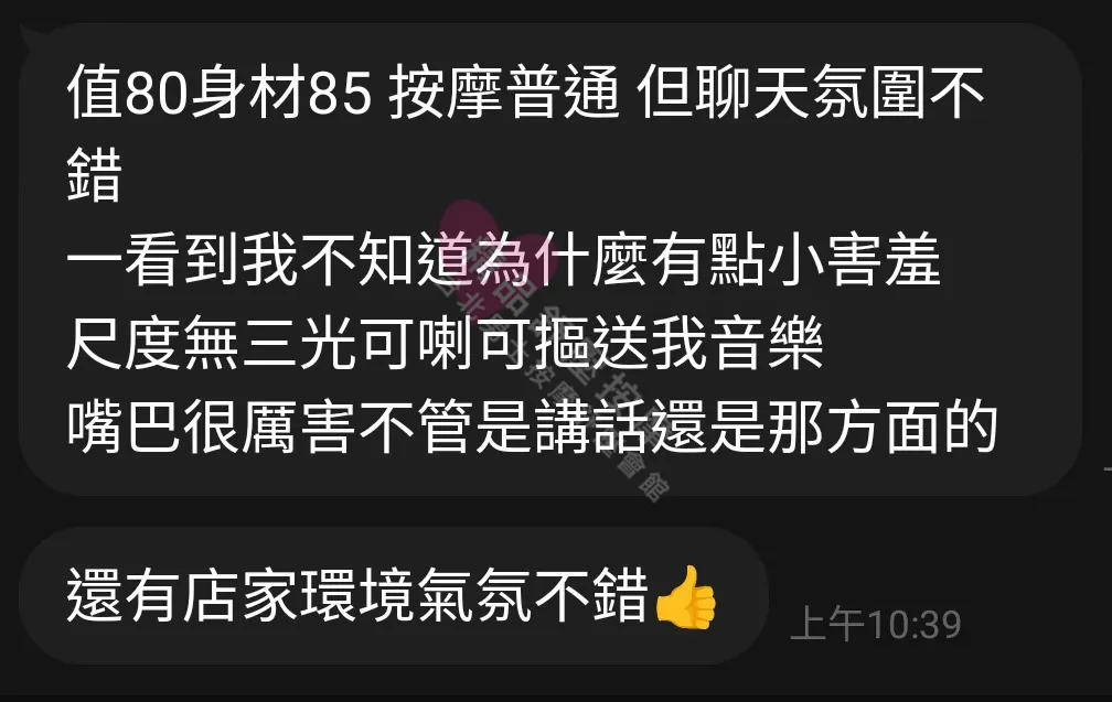 美容師都很有禮貌,先幫你背部按摩聊聊天,前戲會開始調情輕功,再來就是重點部位的加強。如果預算,也可以跟美容師聊聊加值服務,放心問都有機會。精品舒壓期待每位客人每次來舒壓都有個Happy Ending!
