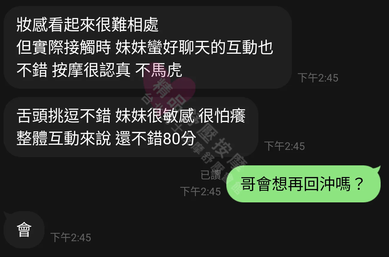 美容師都很有禮貌,先幫你背部按摩聊聊天,前戲會開始調情輕功,再來就是重點部位的加強。如果預算,也可以跟美容師聊聊加值服務,放心問都有機會。精品舒壓期待每位客人每次來舒壓都有個Happy Ending!