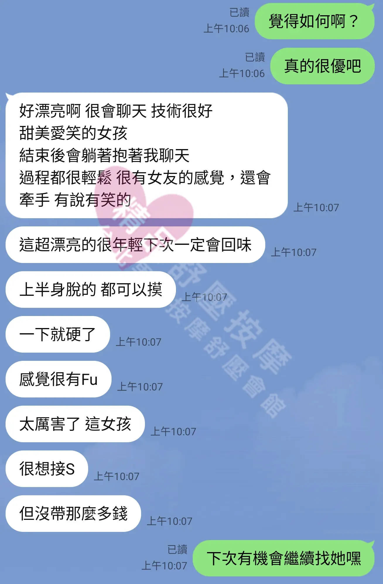 美容師都很有禮貌,先幫你背部按摩聊聊天,前戲會開始調情輕功,再來就是重點部位的加強。如果預算,也可以跟美容師聊聊加值服務,放心問都有機會。精品舒壓期待每位客人每次來舒壓都有個Happy Ending!