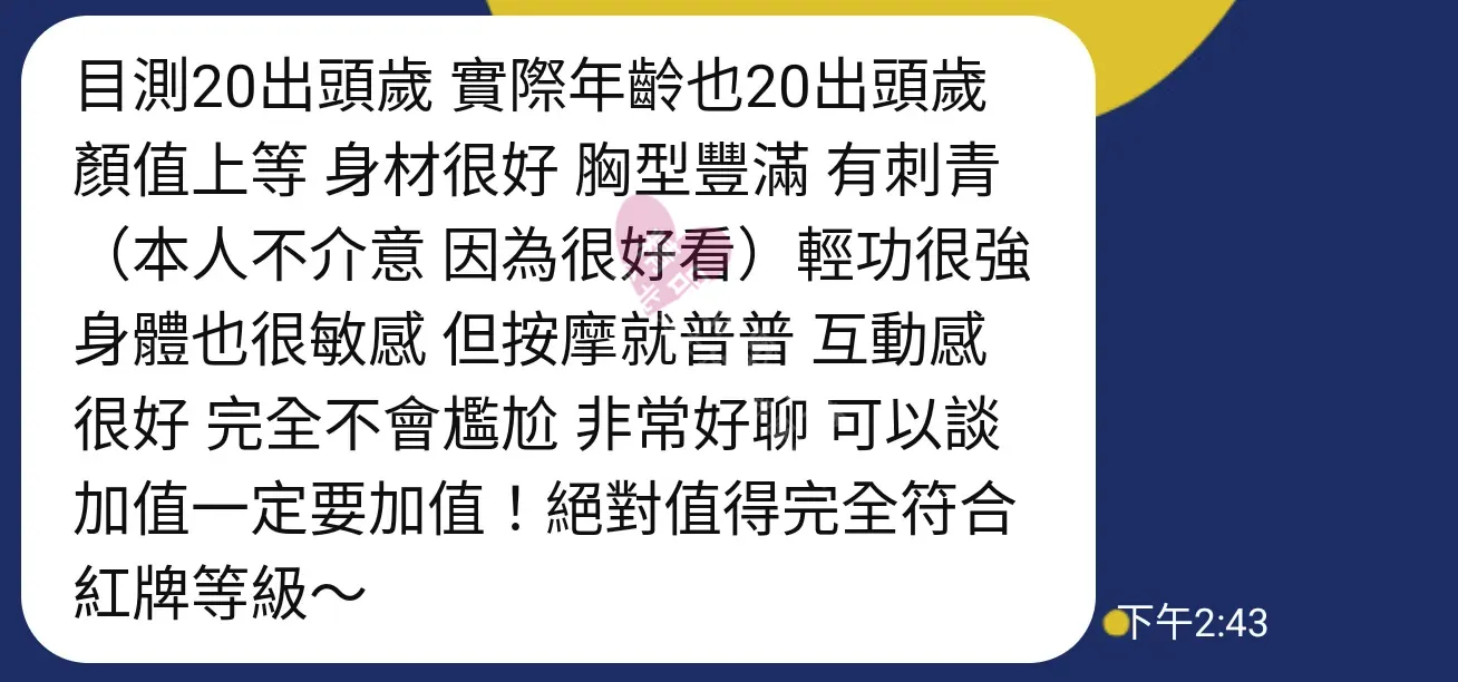 美容師都很有禮貌,先幫你背部按摩聊聊天,前戲會開始調情輕功,再來就是重點部位的加強。如果預算,也可以跟美容師聊聊加值服務,放心問都有機會。精品舒壓期待每位客人每次來舒壓都有個Happy Ending!