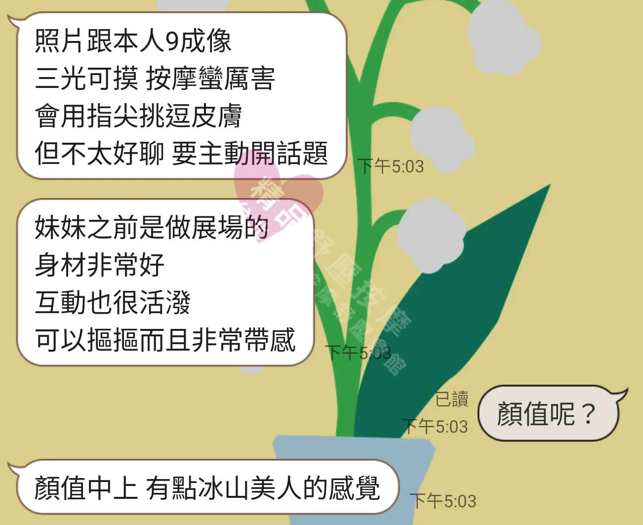 提前跟幹部預約,提出自己對美容師的要求,例如是大奶、長腿又或是小隻馬等等,通常幹部都會盡可能滿在你的要求,還可以選擇想要怎麼玩,是否可以加值更多的服務等等,這些都能通過幹部來提前預約實現。