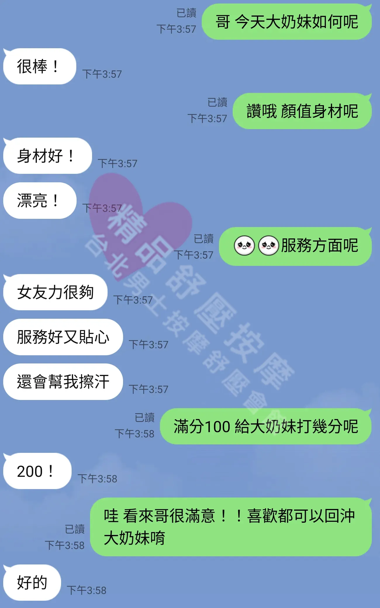 美容師都很有禮貌,先幫你背部按摩聊聊天,前戲會開始調情輕功,再來就是重點部位的加強。如果預算,也可以跟美容師聊聊加值服務,放心問都有機會。精品舒壓期待每位客人每次來舒壓都有個Happy Ending!