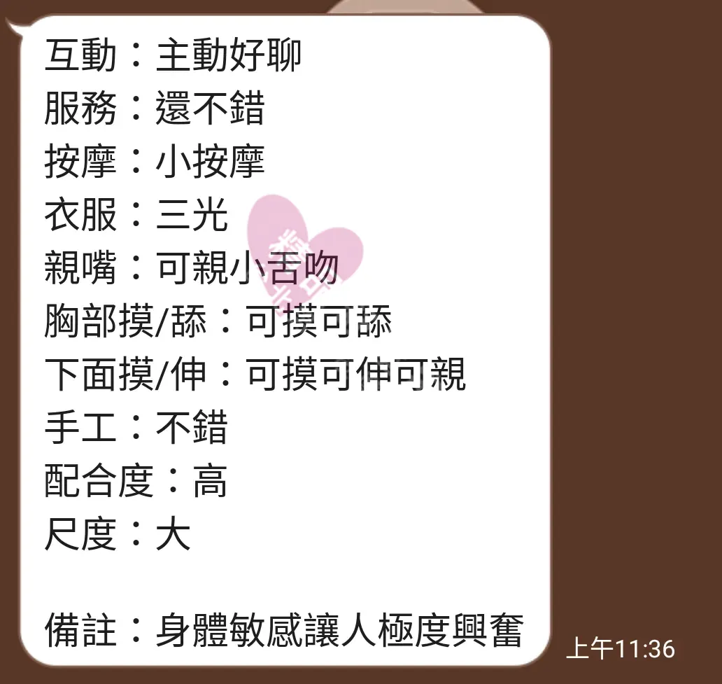 美容師都很有禮貌,先幫你背部按摩聊聊天,前戲會開始調情輕功,再來就是重點部位的加強。如果預算,也可以跟美容師聊聊加值服務,放心問都有機會。精品舒壓期待每位客人每次來舒壓都有個Happy Ending!