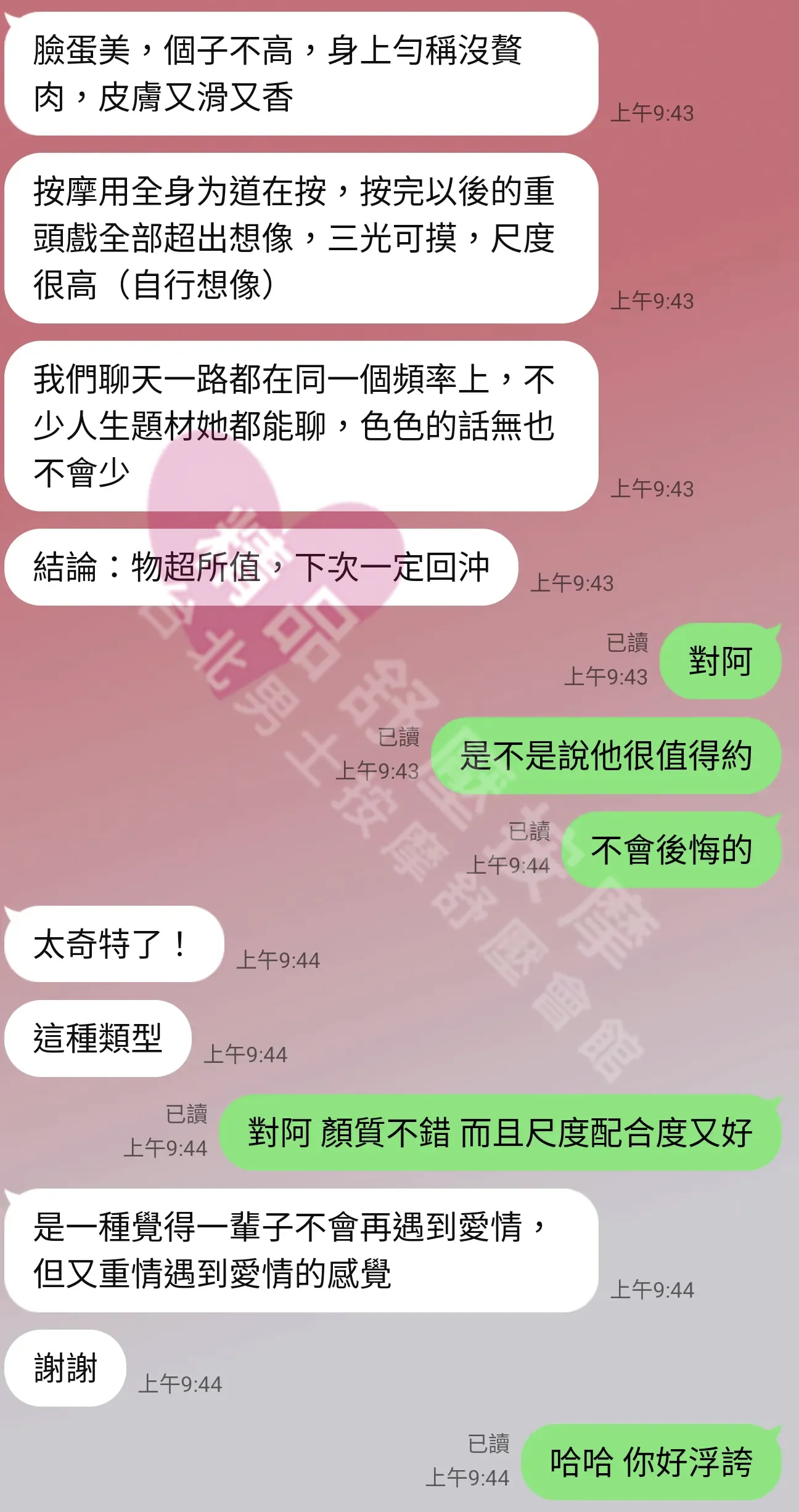 美容師都很有禮貌,先幫你背部按摩聊聊天,前戲會開始調情輕功,再來就是重點部位的加強。如果預算,也可以跟美容師聊聊加值服務,放心問都有機會。精品舒壓期待每位客人每次來舒壓都有個Happy Ending!