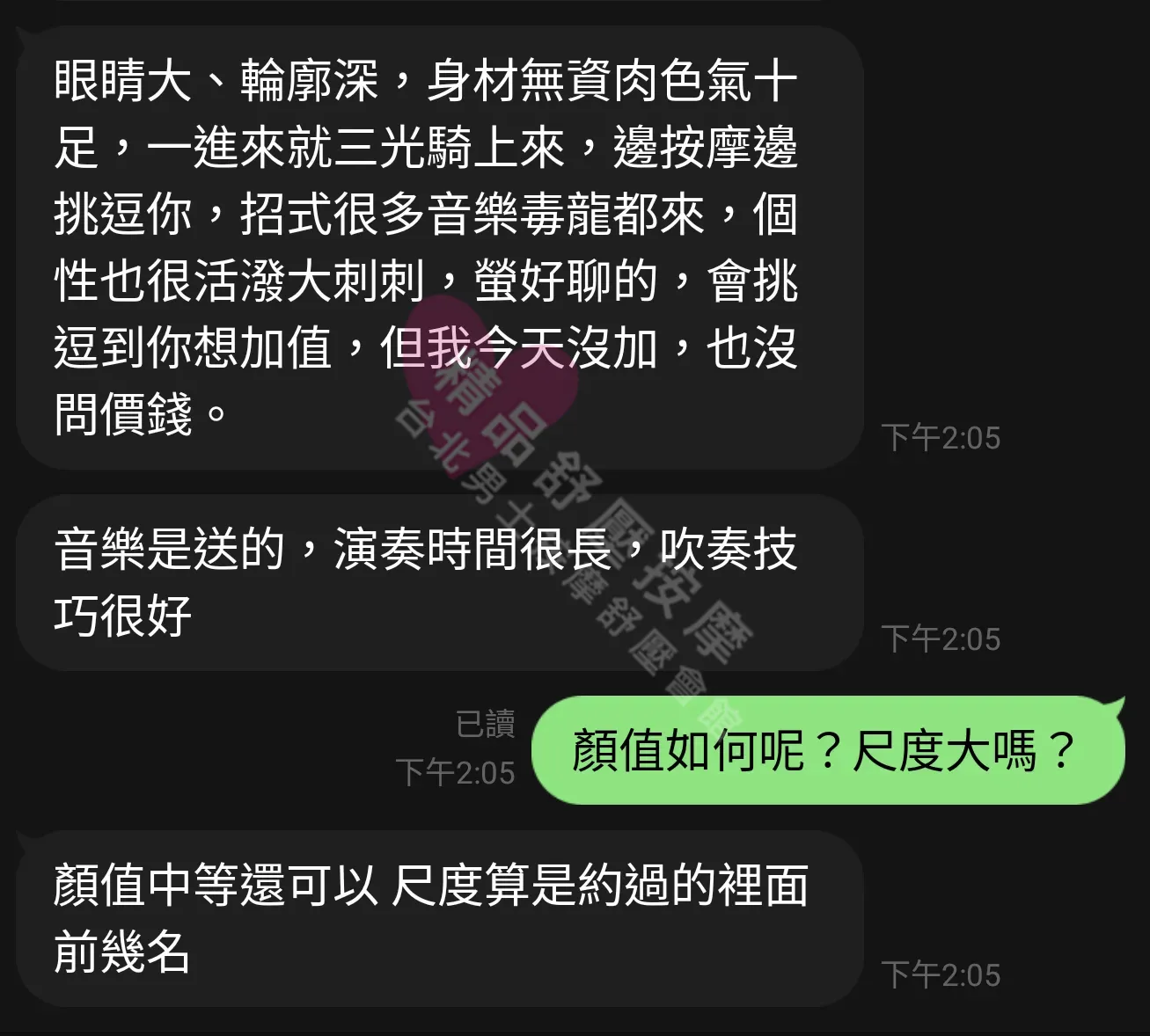 美容師都很有禮貌,先幫你背部按摩聊聊天,前戲會開始調情輕功,再來就是重點部位的加強。如果預算,也可以跟美容師聊聊加值服務,放心問都有機會。精品舒壓期待每位客人每次來舒壓都有個Happy Ending!