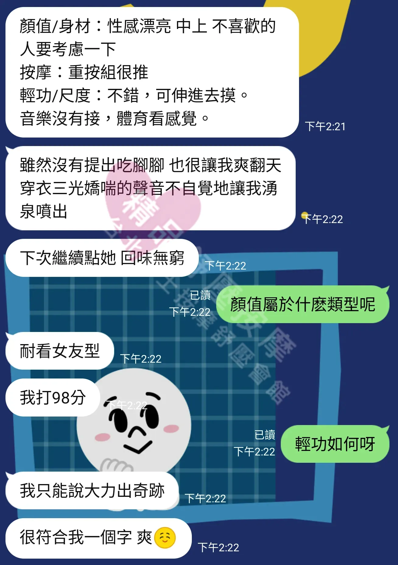 美容師都很有禮貌,先幫你背部按摩聊聊天,前戲會開始調情輕功,再來就是重點部位的加強。如果預算,也可以跟美容師聊聊加值服務,放心問都有機會。精品舒壓期待每位客人每次來舒壓都有個Happy Ending!
