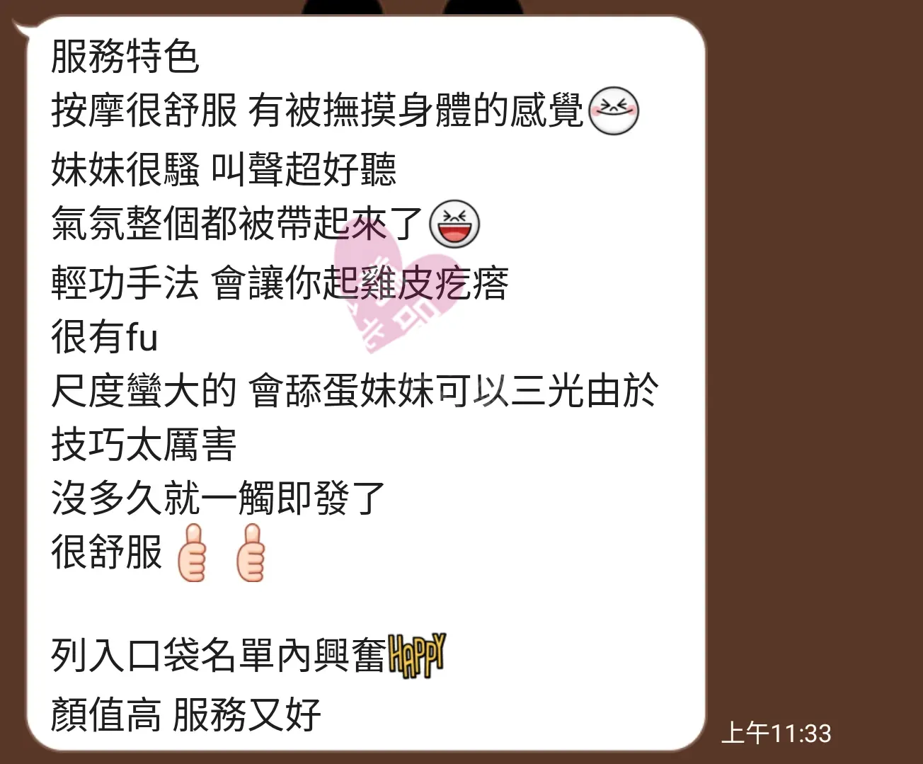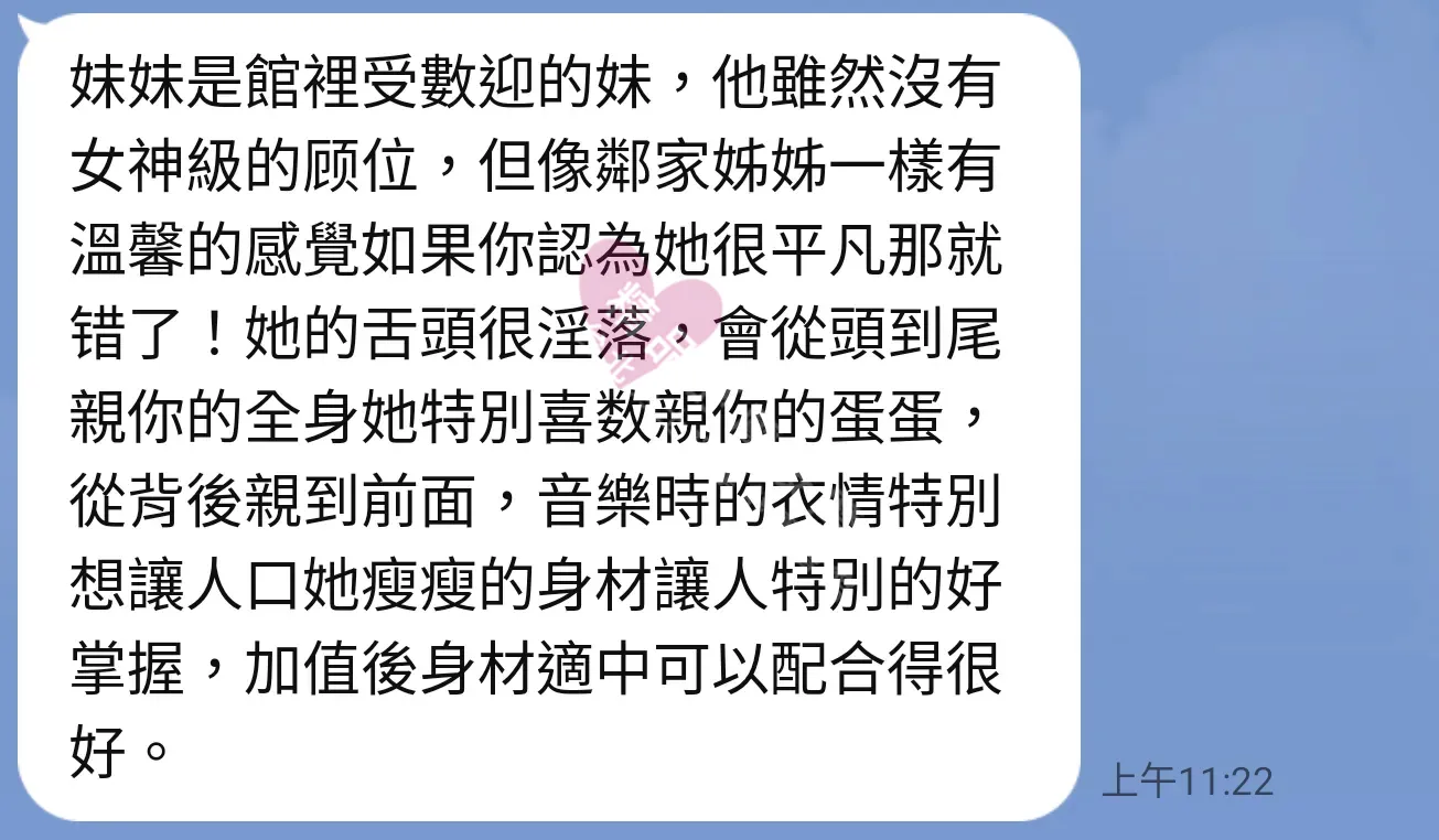 美容師都很有禮貌,先幫你背部按摩聊聊天,前戲會開始調情輕功,再來就是重點部位的加強。如果預算,也可以跟美容師聊聊加值服務,放心問都有機會。精品舒壓期待每位客人每次來舒壓都有個Happy Ending!