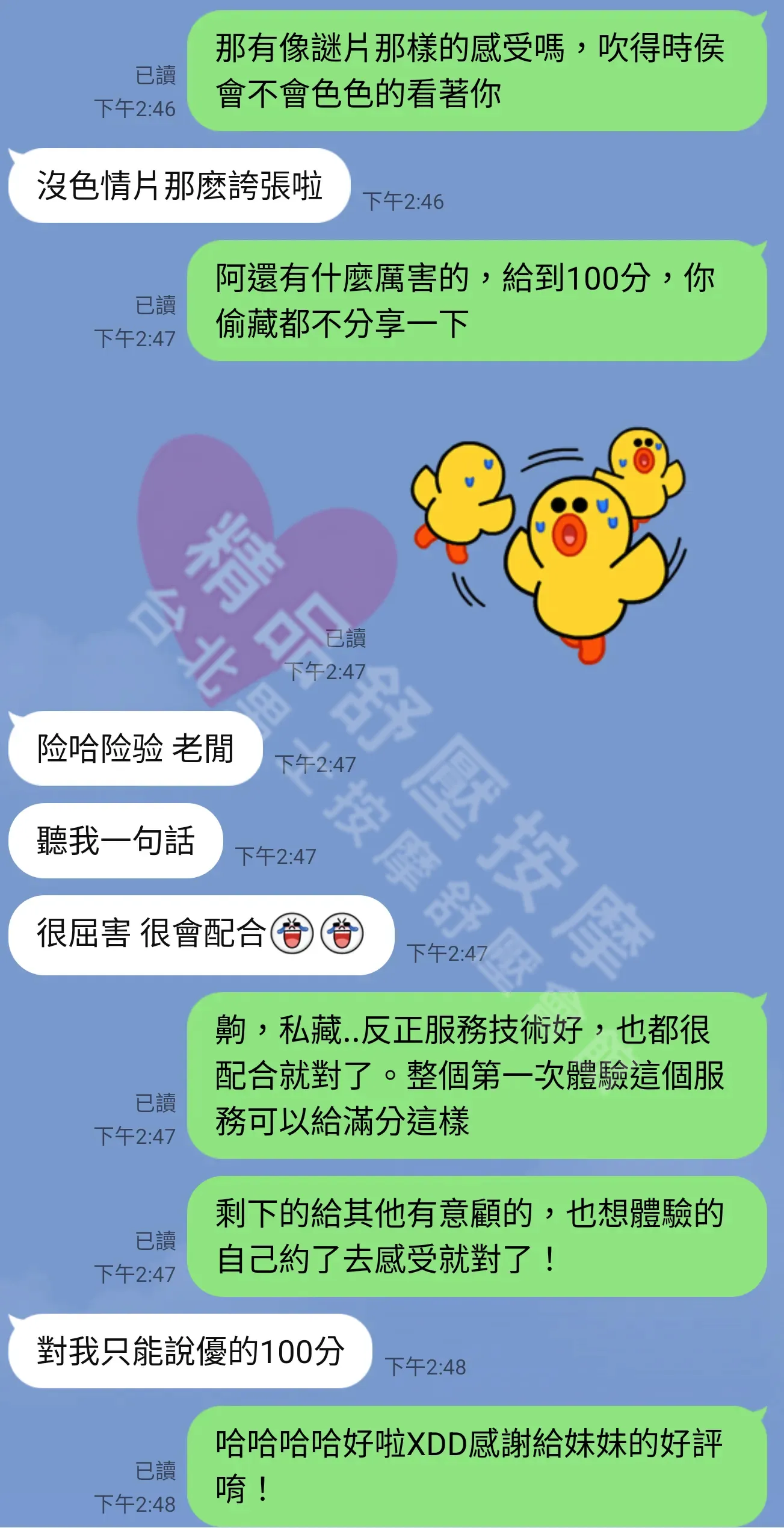 美容師都很有禮貌,先幫你背部按摩聊聊天,前戲會開始調情輕功,再來就是重點部位的加強。如果預算,也可以跟美容師聊聊加值服務,放心問都有機會。精品舒壓期待每位客人每次來舒壓都有個Happy Ending!