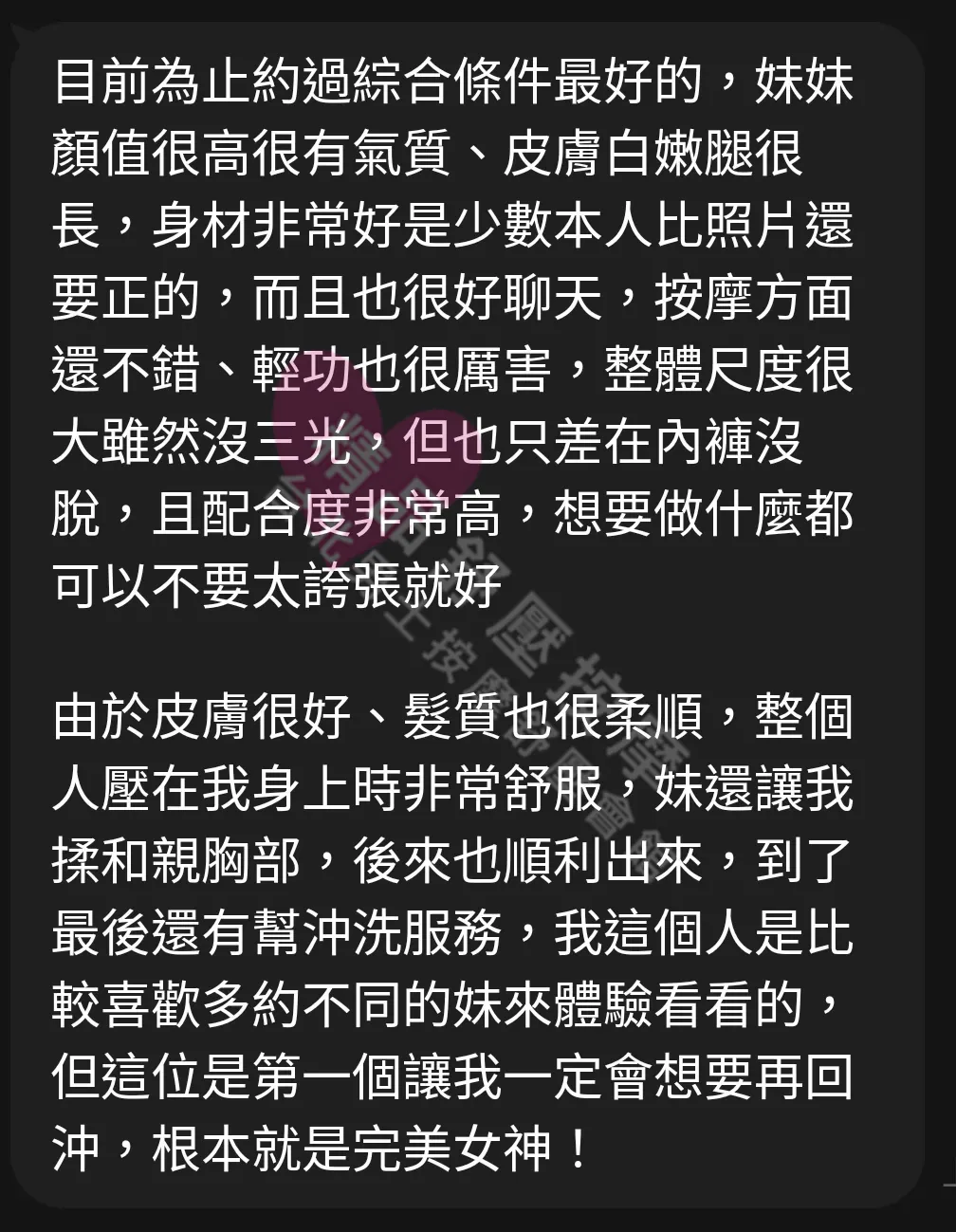美容師都很有禮貌,先幫你背部按摩聊聊天,前戲會開始調情輕功,再來就是重點部位的加強。如果預算,也可以跟美容師聊聊加值服務,放心問都有機會。精品舒壓期待每位客人每次來舒壓都有個Happy Ending!