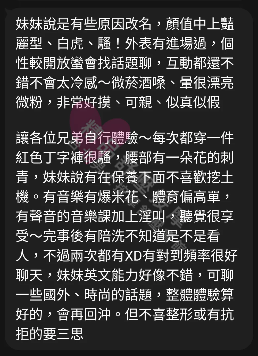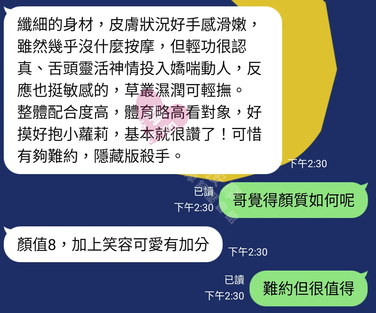 美容師都很有禮貌,先幫你背部按摩聊聊天,前戲會開始調情輕功,再來就是重點部位的加強。如果預算,也可以跟美容師聊聊加值服務,放心問都有機會。精品舒壓期待每位客人每次來舒壓都有個Happy Ending!
