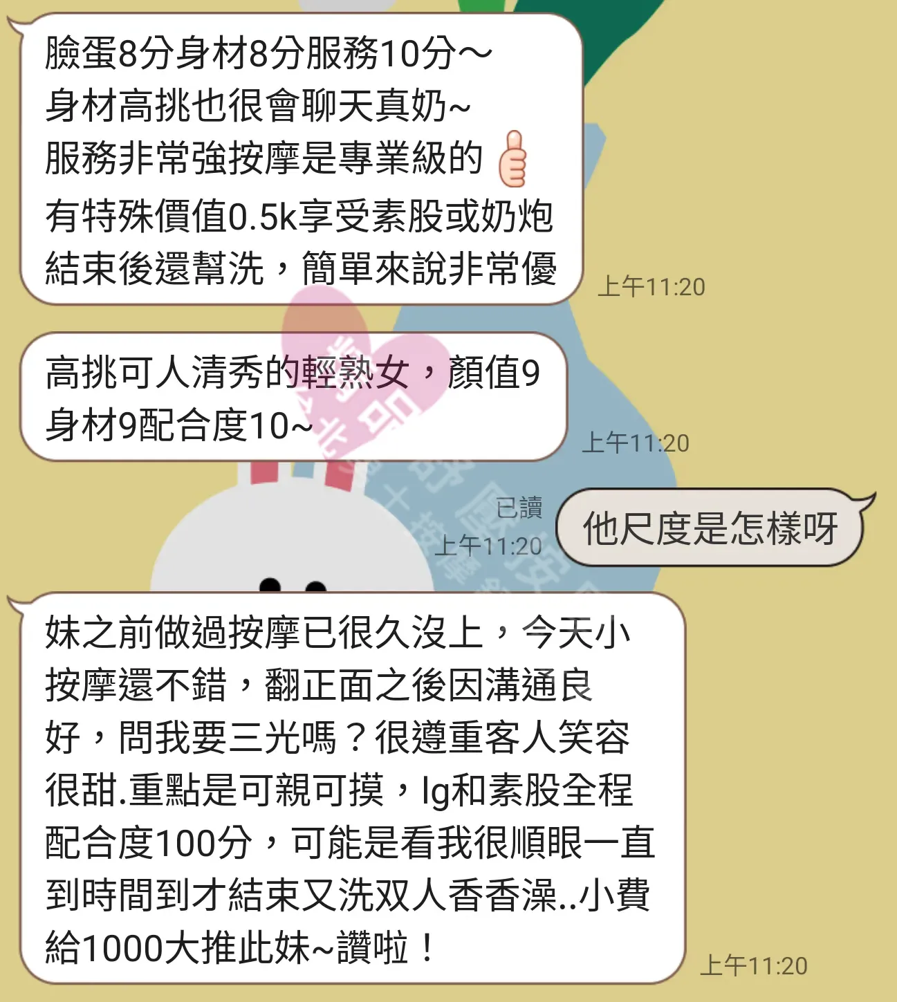 美容師都很有禮貌,先幫你背部按摩聊聊天,前戲會開始調情輕功,再來就是重點部位的加強。如果預算,也可以跟美容師聊聊加值服務,放心問都有機會。精品舒壓期待每位客人每次來舒壓都有個Happy Ending!