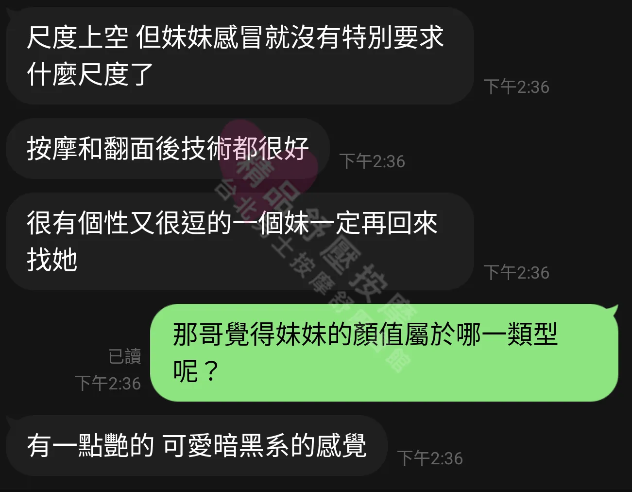 美容師都很有禮貌,先幫你背部按摩聊聊天,前戲會開始調情輕功,再來就是重點部位的加強。如果預算,也可以跟美容師聊聊加值服務,放心問都有機會。精品舒壓期待每位客人每次來舒壓都有個Happy Ending!