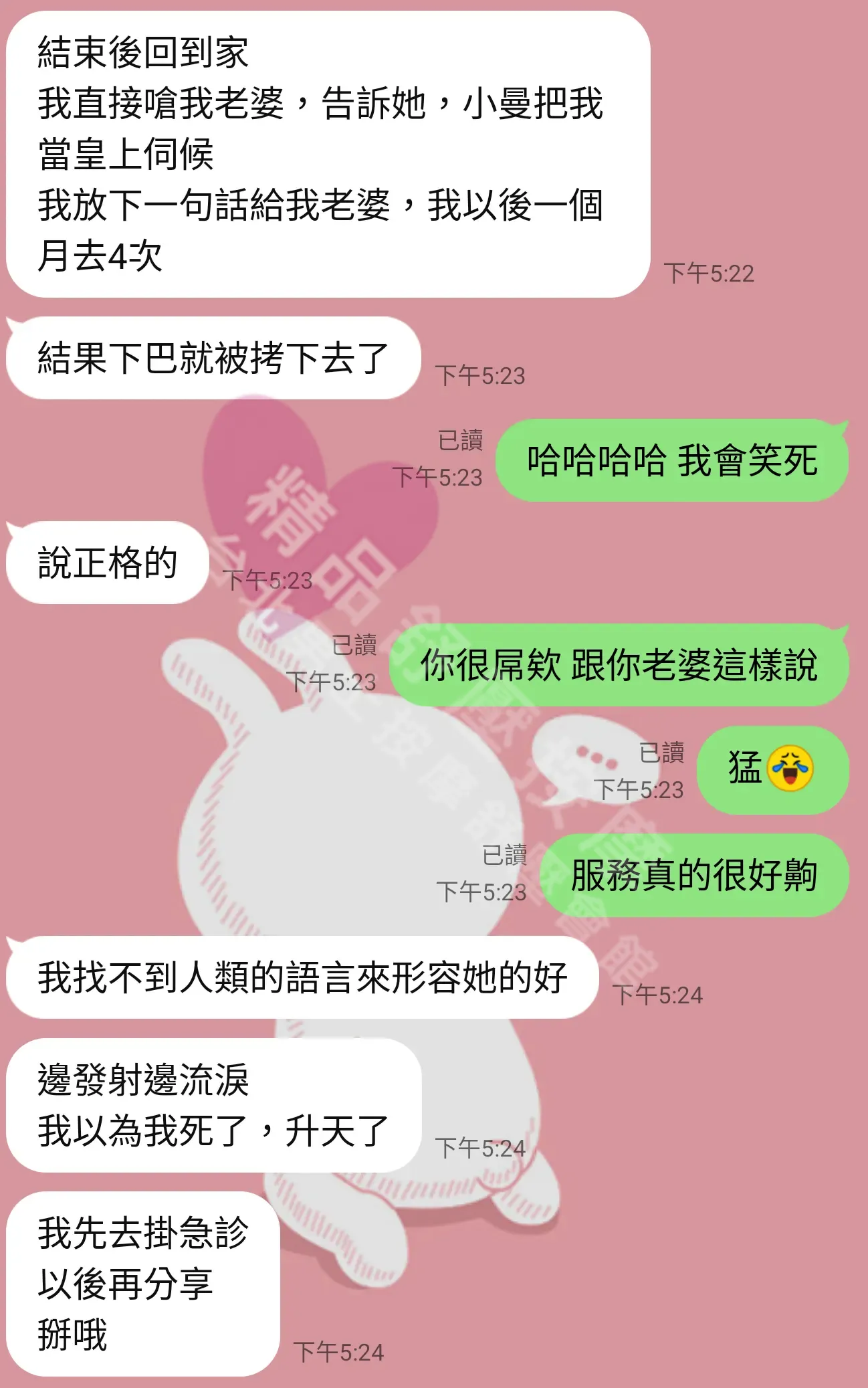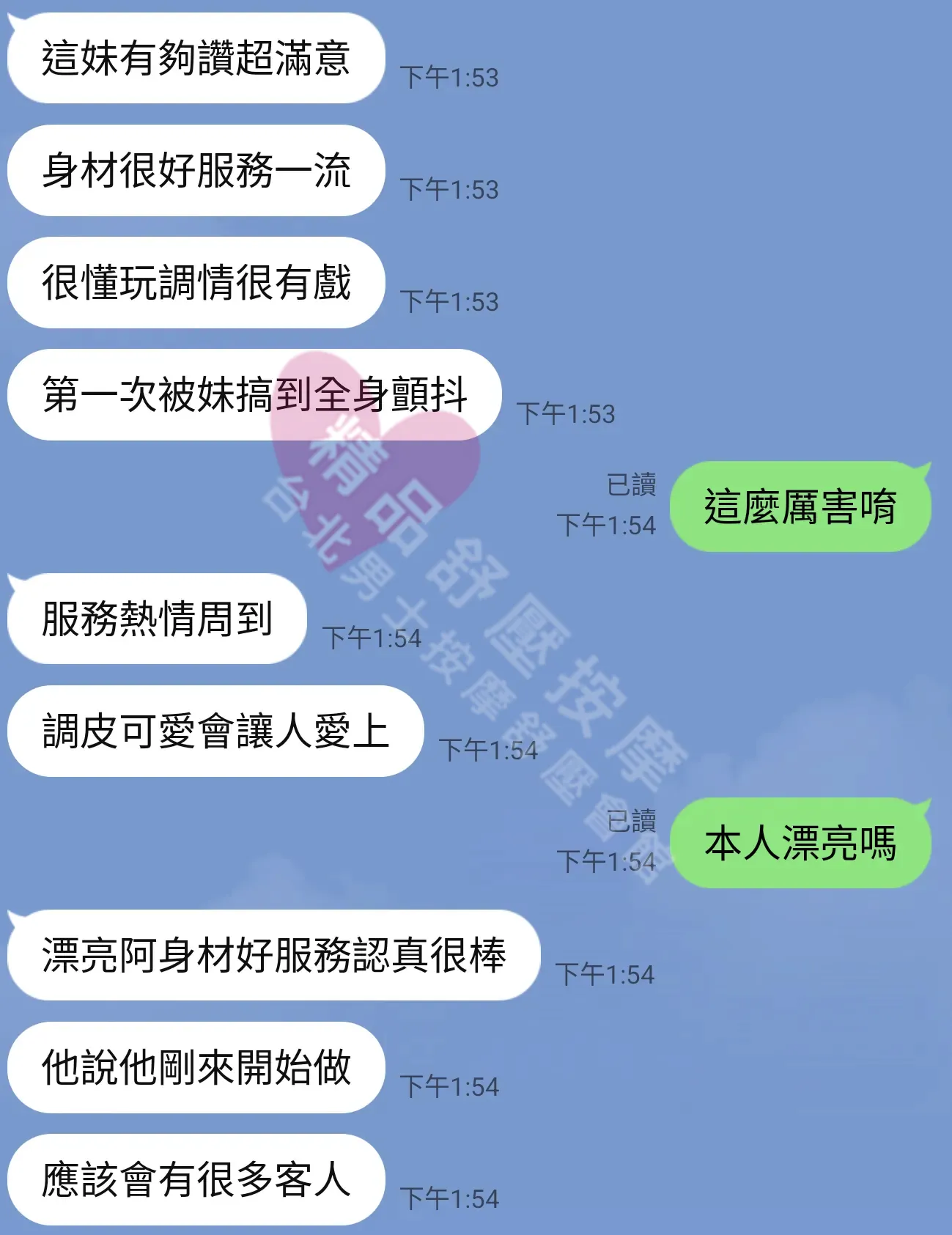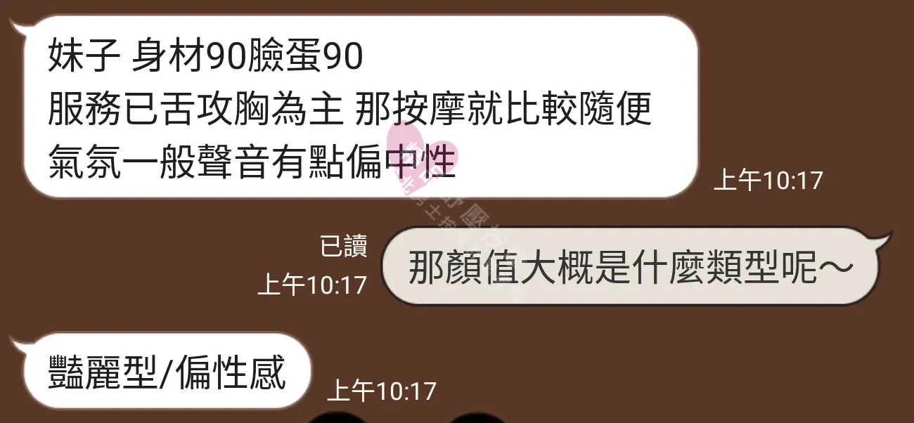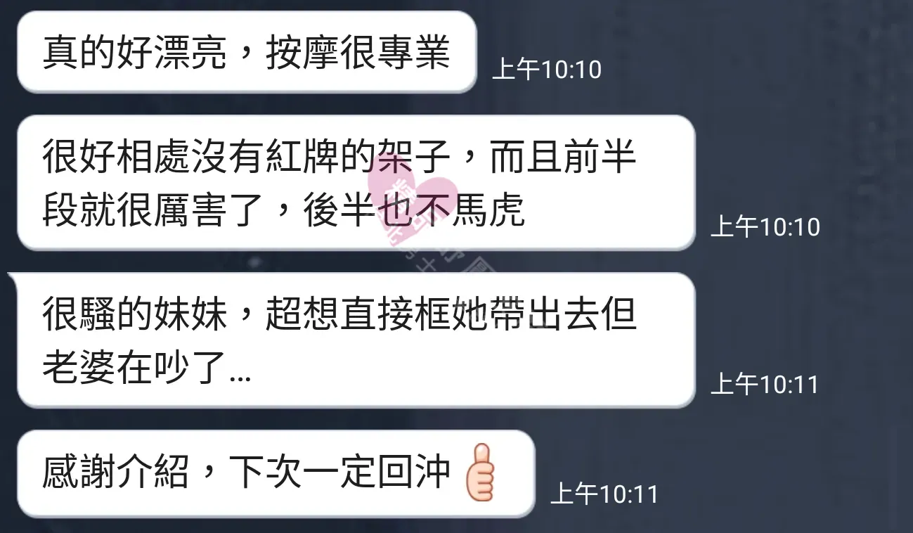 美容師都很有禮貌,先幫你背部按摩聊聊天,前戲會開始調情輕功,再來就是重點部位的加強。如果預算,也可以跟美容師聊聊加值服務,放心問都有機會。精品舒壓期待每位客人每次來舒壓都有個Happy Ending!