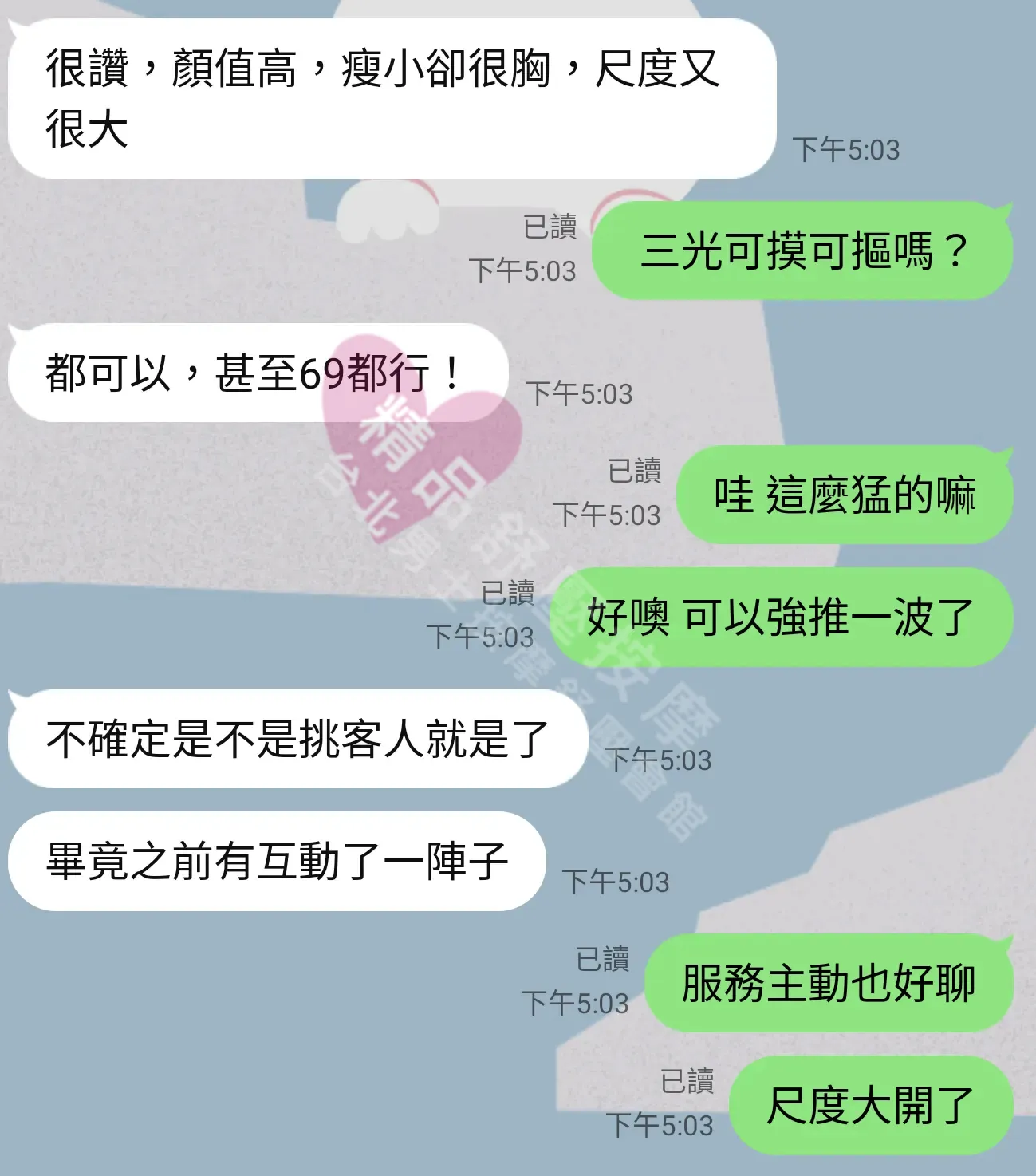 美容師都很有禮貌,先幫你背部按摩聊聊天,前戲會開始調情輕功,再來就是重點部位的加強。如果預算,也可以跟美容師聊聊加值服務,放心問都有機會。精品舒壓期待每位客人每次來舒壓都有個Happy Ending!