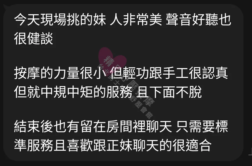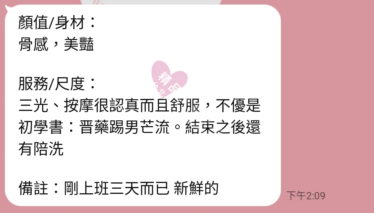 美容師都很有禮貌,先幫你背部按摩聊聊天,前戲會開始調情輕功,再來就是重點部位的加強。如果預算,也可以跟美容師聊聊加值服務,放心問都有機會。精品舒壓期待每位客人每次來舒壓都有個Happy Ending!