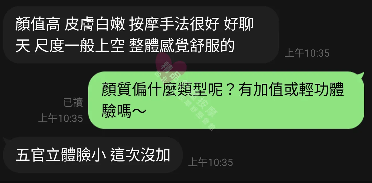 美容師都很有禮貌,先幫你背部按摩聊聊天,前戲會開始調情輕功,再來就是重點部位的加強。如果預算,也可以跟美容師聊聊加值服務,放心問都有機會。精品舒壓期待每位客人每次來舒壓都有個Happy Ending!