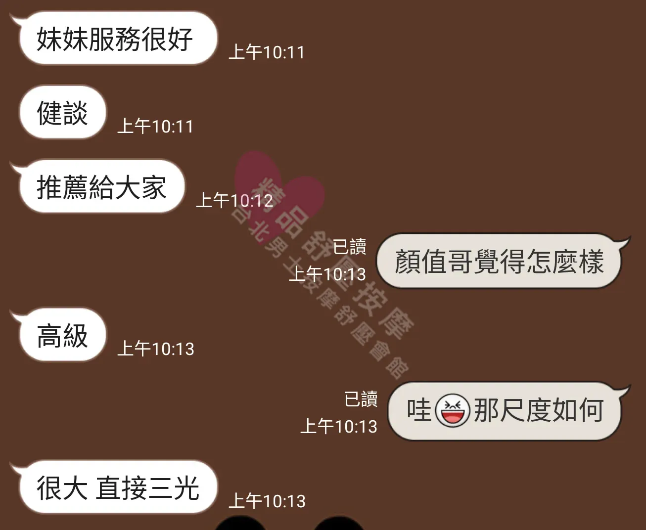美容師都很有禮貌,先幫你背部按摩聊聊天,前戲會開始調情輕功,再來就是重點部位的加強。如果預算,也可以跟美容師聊聊加值服務,放心問都有機會。精品舒壓期待每位客人每次來舒壓都有個Happy Ending!