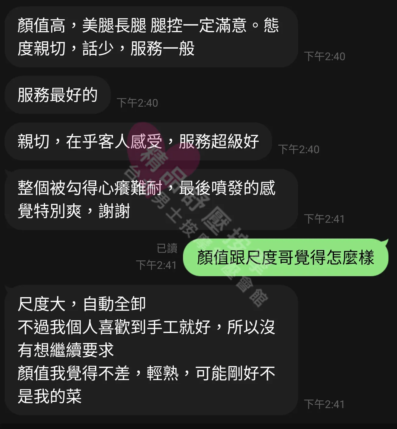 美容師都很有禮貌,先幫你背部按摩聊聊天,前戲會開始調情輕功,再來就是重點部位的加強。如果預算,也可以跟美容師聊聊加值服務,放心問都有機會。精品舒壓期待每位客人每次來舒壓都有個Happy Ending!