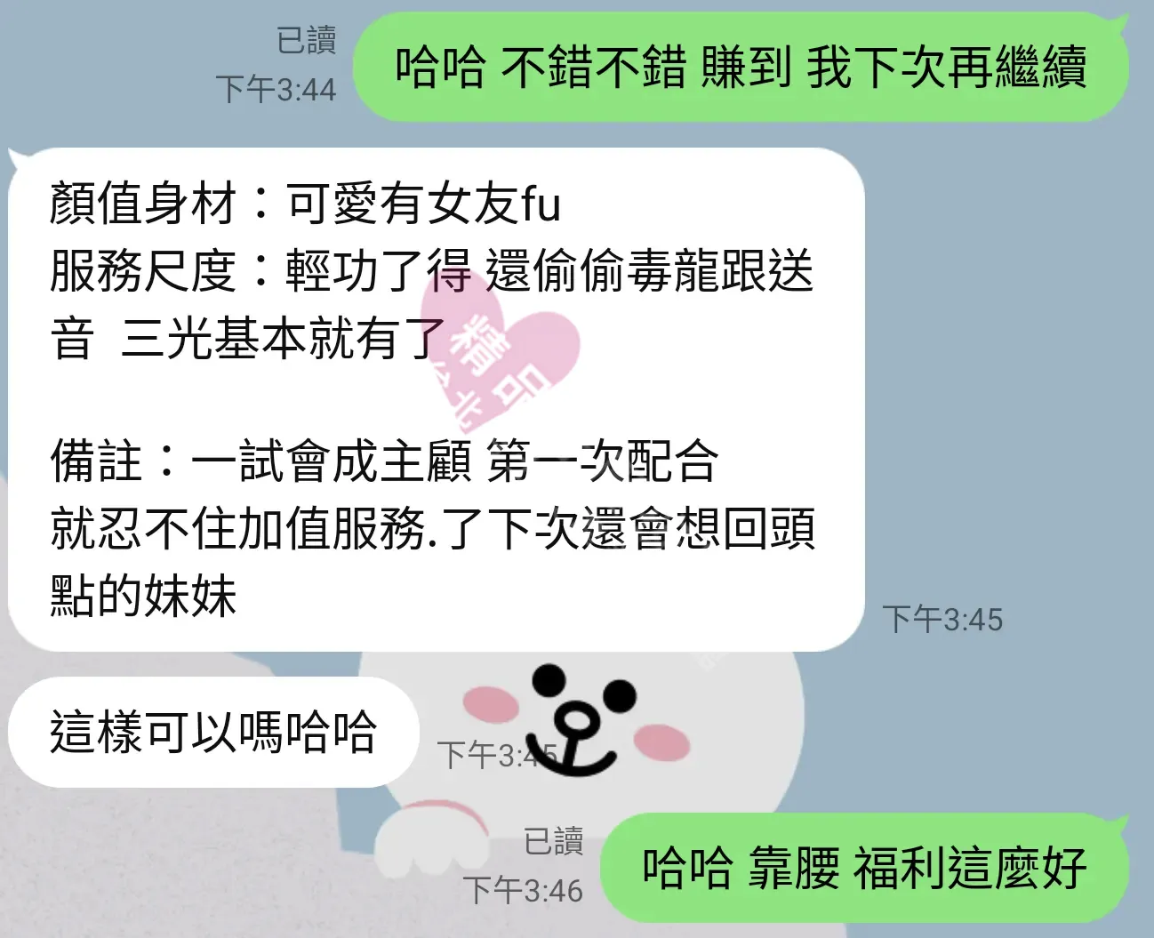 美容師都很有禮貌,先幫你背部按摩聊聊天,前戲會開始調情輕功,再來就是重點部位的加強。如果預算,也可以跟美容師聊聊加值服務,放心問都有機會。精品舒壓期待每位客人每次來舒壓都有個Happy Ending!