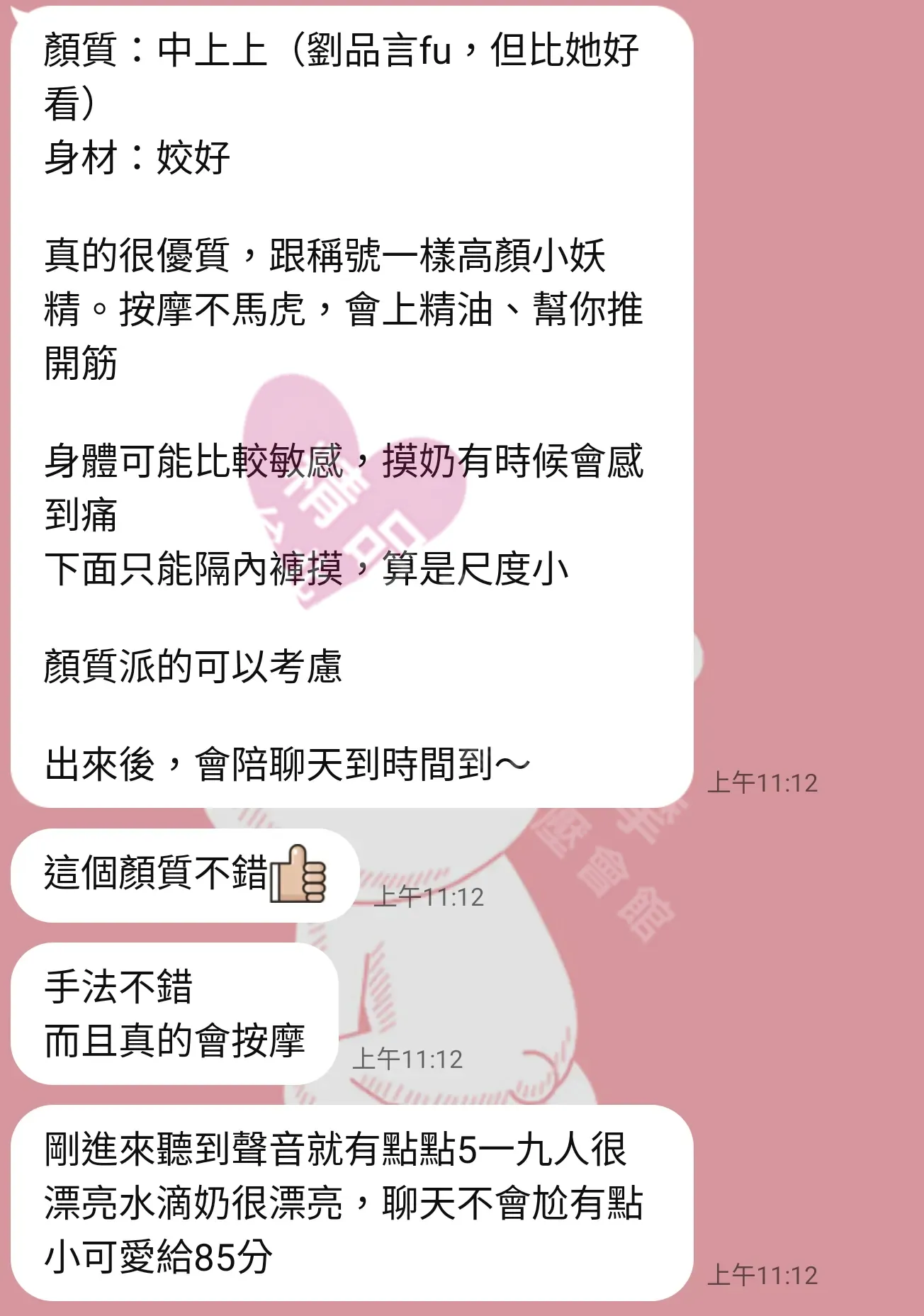 美容師都很有禮貌,先幫你背部按摩聊聊天,前戲會開始調情輕功,再來就是重點部位的加強。如果預算,也可以跟美容師聊聊加值服務,放心問都有機會。精品舒壓期待每位客人每次來舒壓都有個Happy Ending!