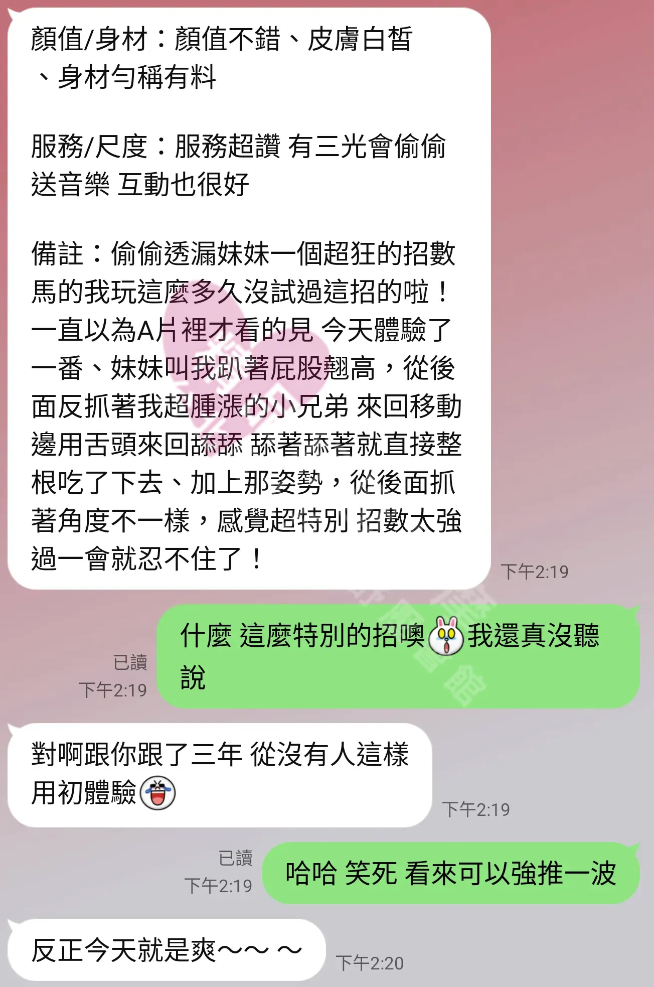 美容師都很有禮貌,先幫你背部按摩聊聊天,前戲會開始調情輕功,再來就是重點部位的加強。如果預算,也可以跟美容師聊聊加值服務,放心問都有機會。精品舒壓期待每位客人每次來舒壓都有個Happy Ending!