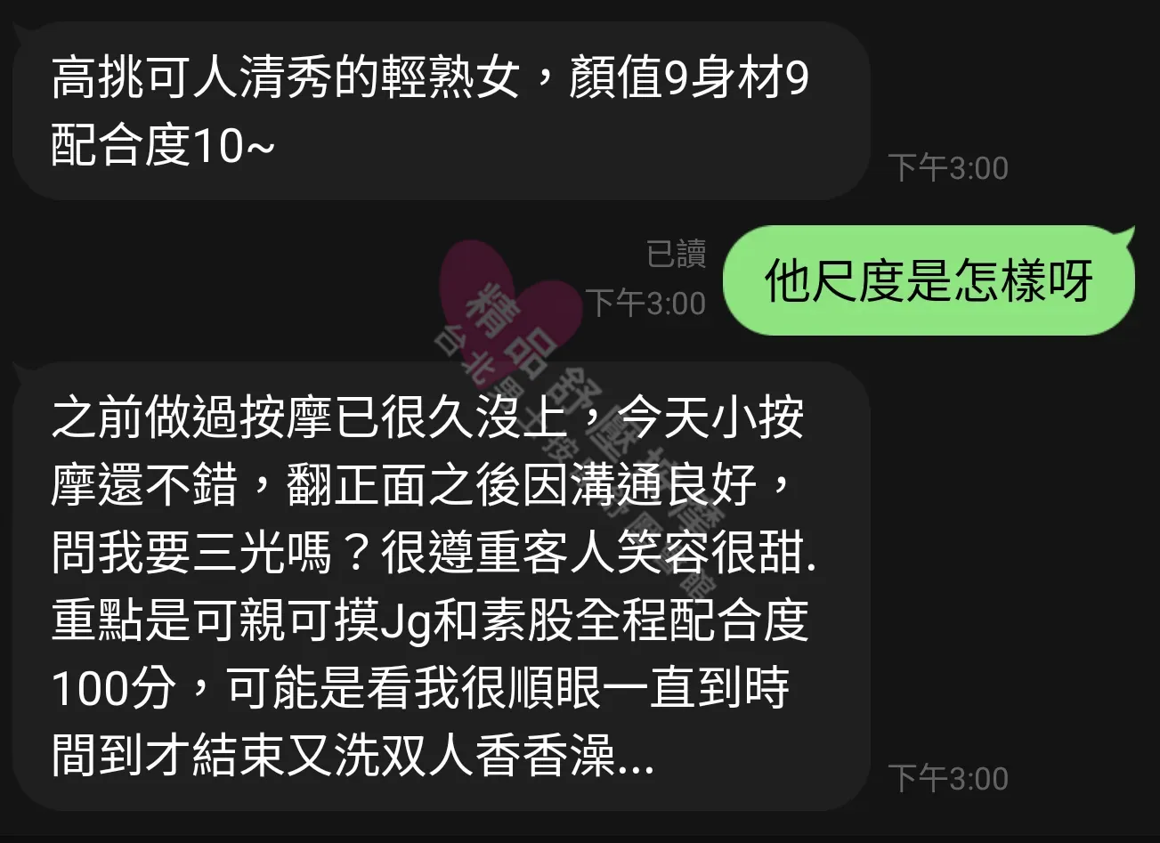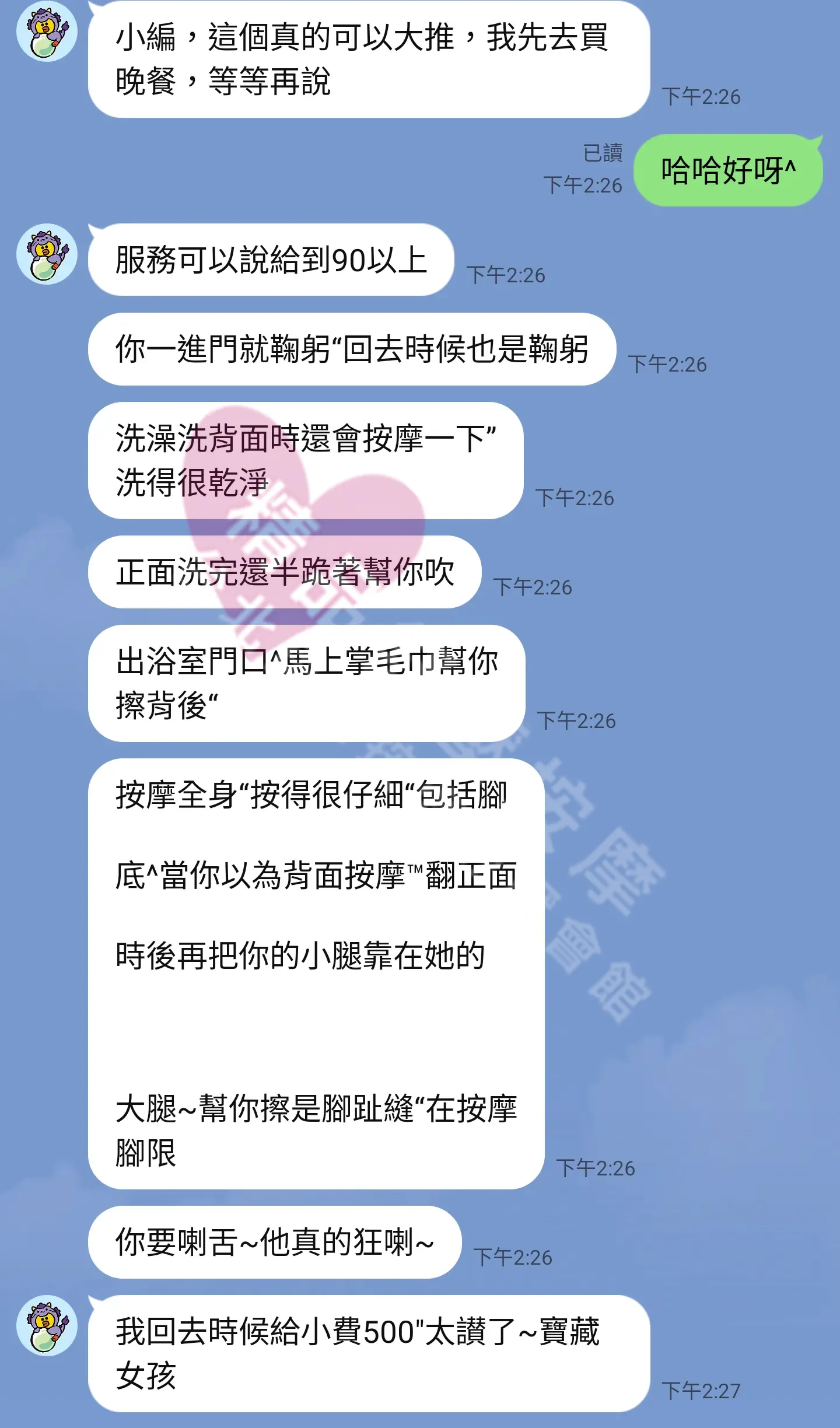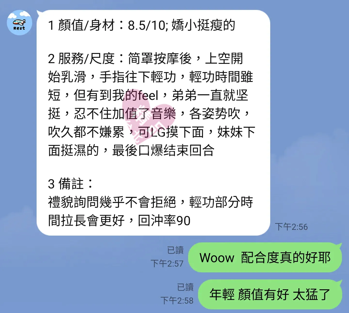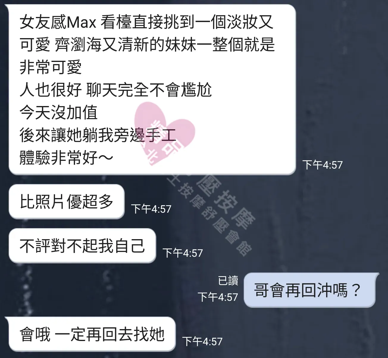 美容師都很有禮貌,先幫你背部按摩聊聊天,前戲會開始調情輕功,再來就是重點部位的加強。如果預算,也可以跟美容師聊聊加值服務,放心問都有機會。精品舒壓期待每位客人每次來舒壓都有個Happy Ending!