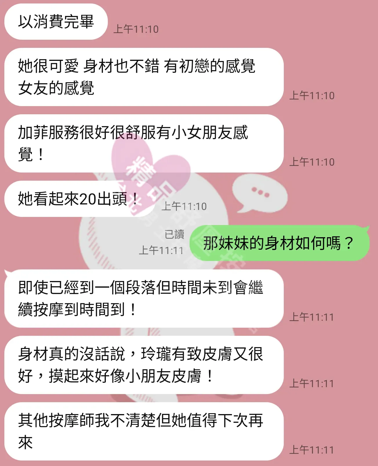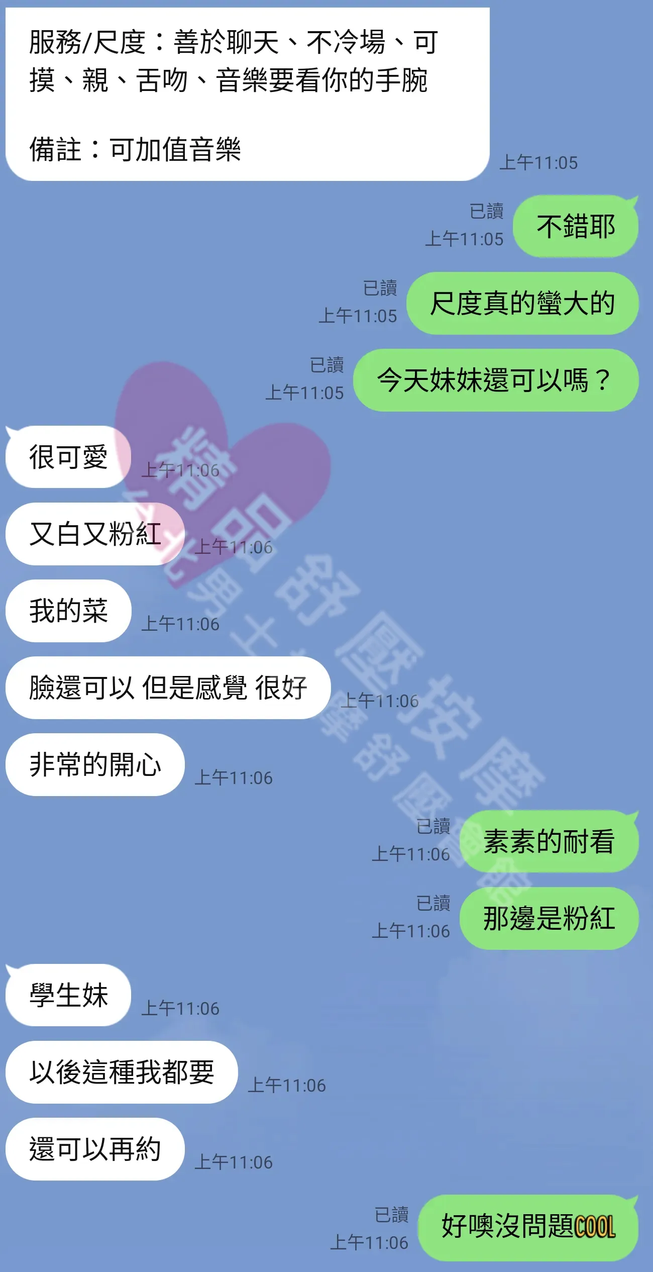 美容師都很有禮貌,先幫你背部按摩聊聊天,前戲會開始調情輕功,再來就是重點部位的加強。如果預算,也可以跟美容師聊聊加值服務,放心問都有機會。精品舒壓期待每位客人每次來舒壓都有個Happy Ending!