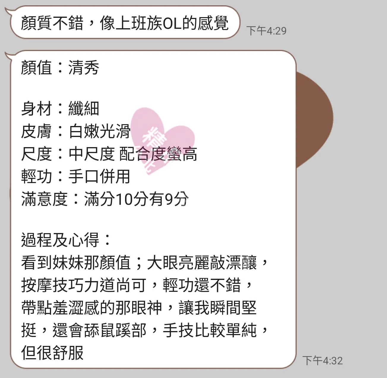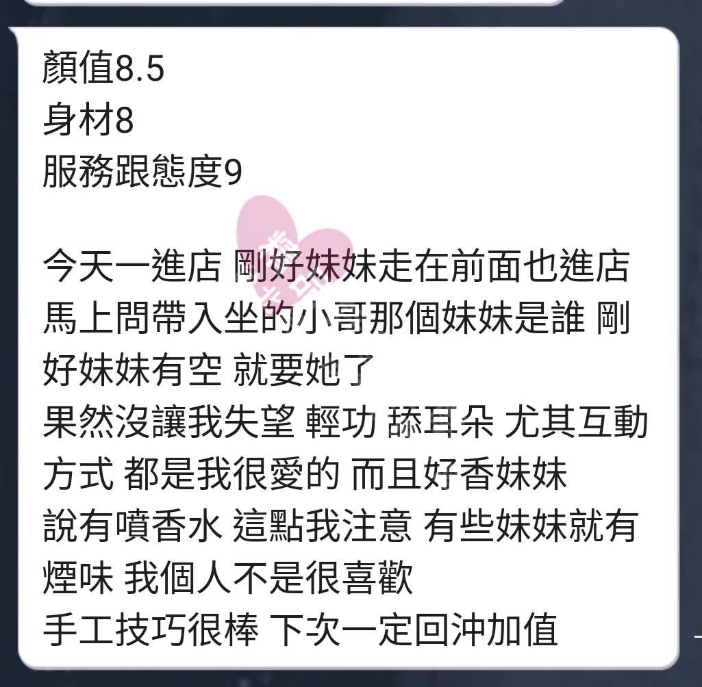 美容師都很有禮貌,先幫你背部按摩聊聊天,前戲會開始調情輕功,再來就是重點部位的加強。如果預算,也可以跟美容師聊聊加值服務,放心問都有機會。精品舒壓期待每位客人每次來舒壓都有個Happy Ending!