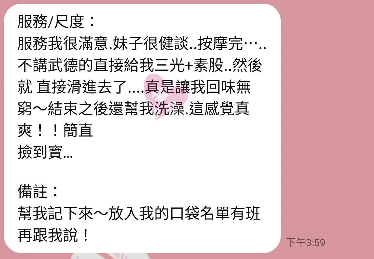 美容師都很有禮貌,先幫你背部按摩聊聊天,前戲會開始調情輕功,再來就是重點部位的加強。如果預算,也可以跟美容師聊聊加值服務,放心問都有機會。精品舒壓期待每位客人每次來舒壓都有個Happy Ending!