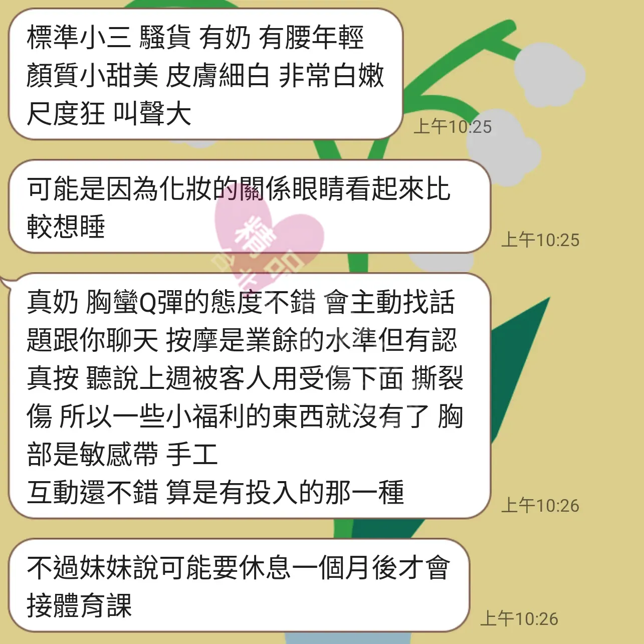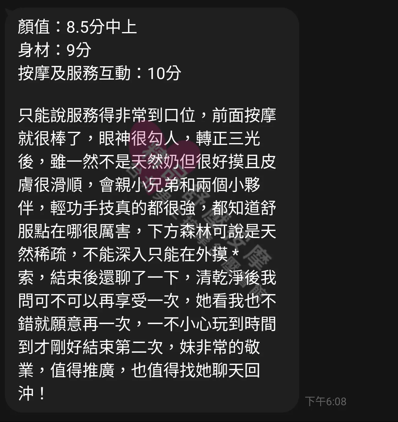 美容師都很有禮貌,先幫你背部按摩聊聊天,前戲會開始調情輕功,再來就是重點部位的加強。如果預算,也可以跟美容師聊聊加值服務,放心問都有機會。精品舒壓期待每位客人每次來舒壓都有個Happy Ending!