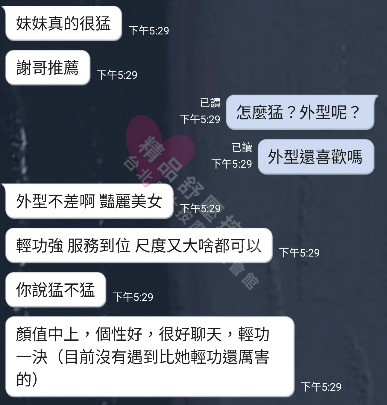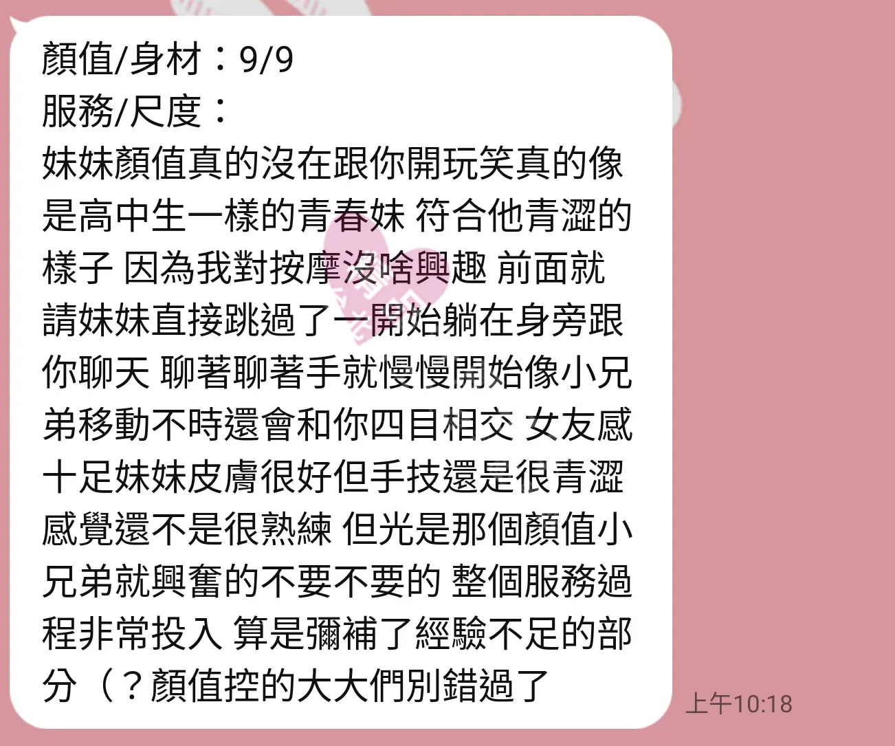 美容師都很有禮貌,先幫你背部按摩聊聊天,前戲會開始調情輕功,再來就是重點部位的加強。如果預算,也可以跟美容師聊聊加值服務,放心問都有機會。精品舒壓期待每位客人每次來舒壓都有個Happy Ending!