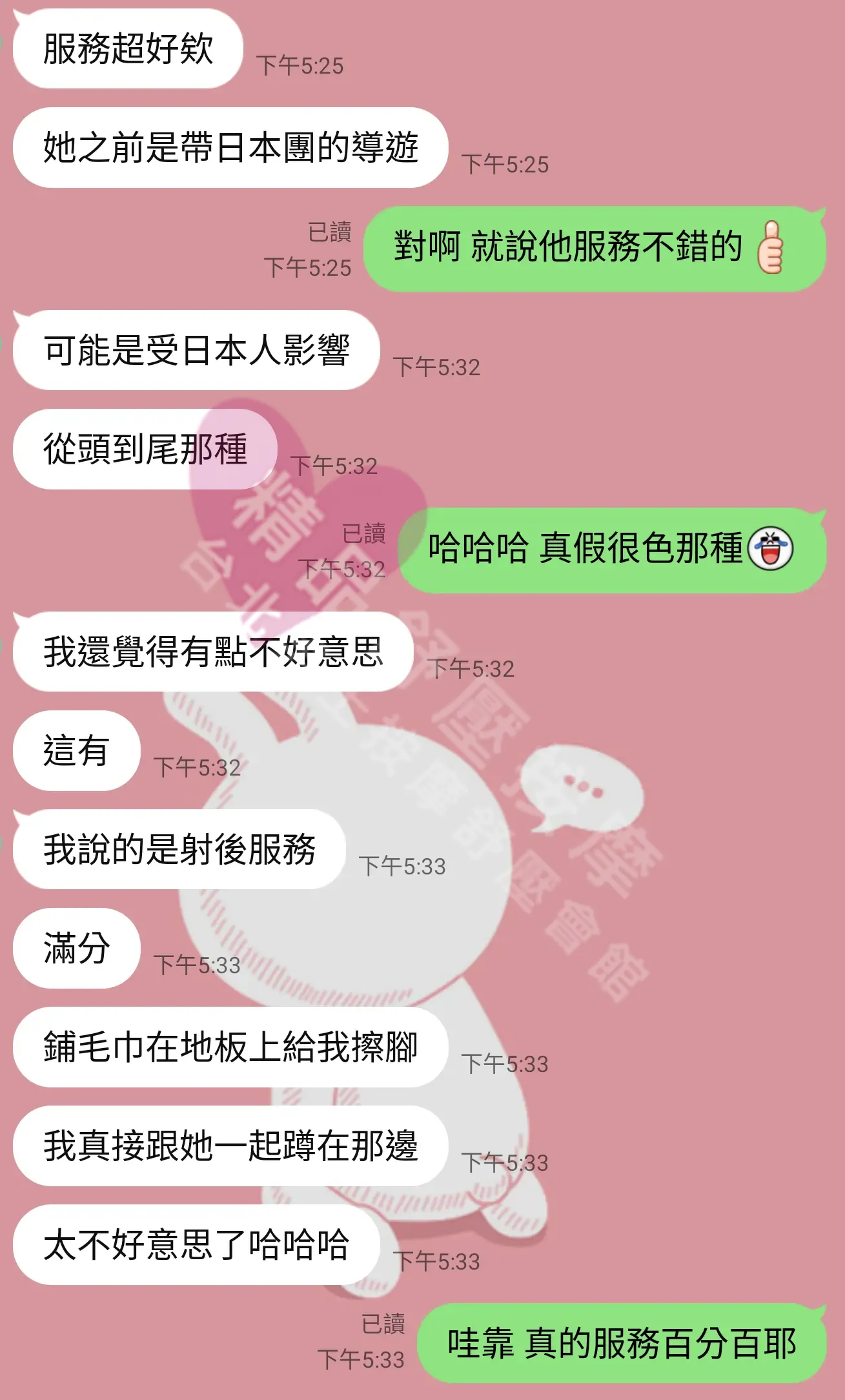 美容師都很有禮貌,先幫你背部按摩聊聊天,前戲會開始調情輕功,再來就是重點部位的加強。如果預算,也可以跟美容師聊聊加值服務,放心問都有機會。精品舒壓期待每位客人每次來舒壓都有個Happy Ending!