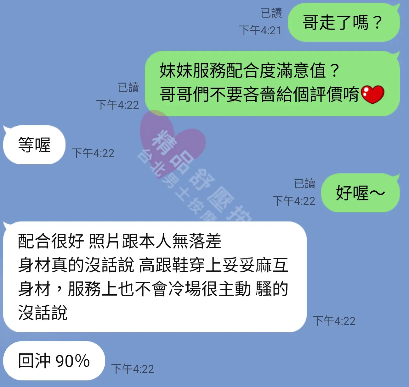 美容師都很有禮貌,先幫你背部按摩聊聊天,前戲會開始調情輕功,再來就是重點部位的加強。如果預算,也可以跟美容師聊聊加值服務,放心問都有機會。精品舒壓期待每位客人每次來舒壓都有個Happy Ending!