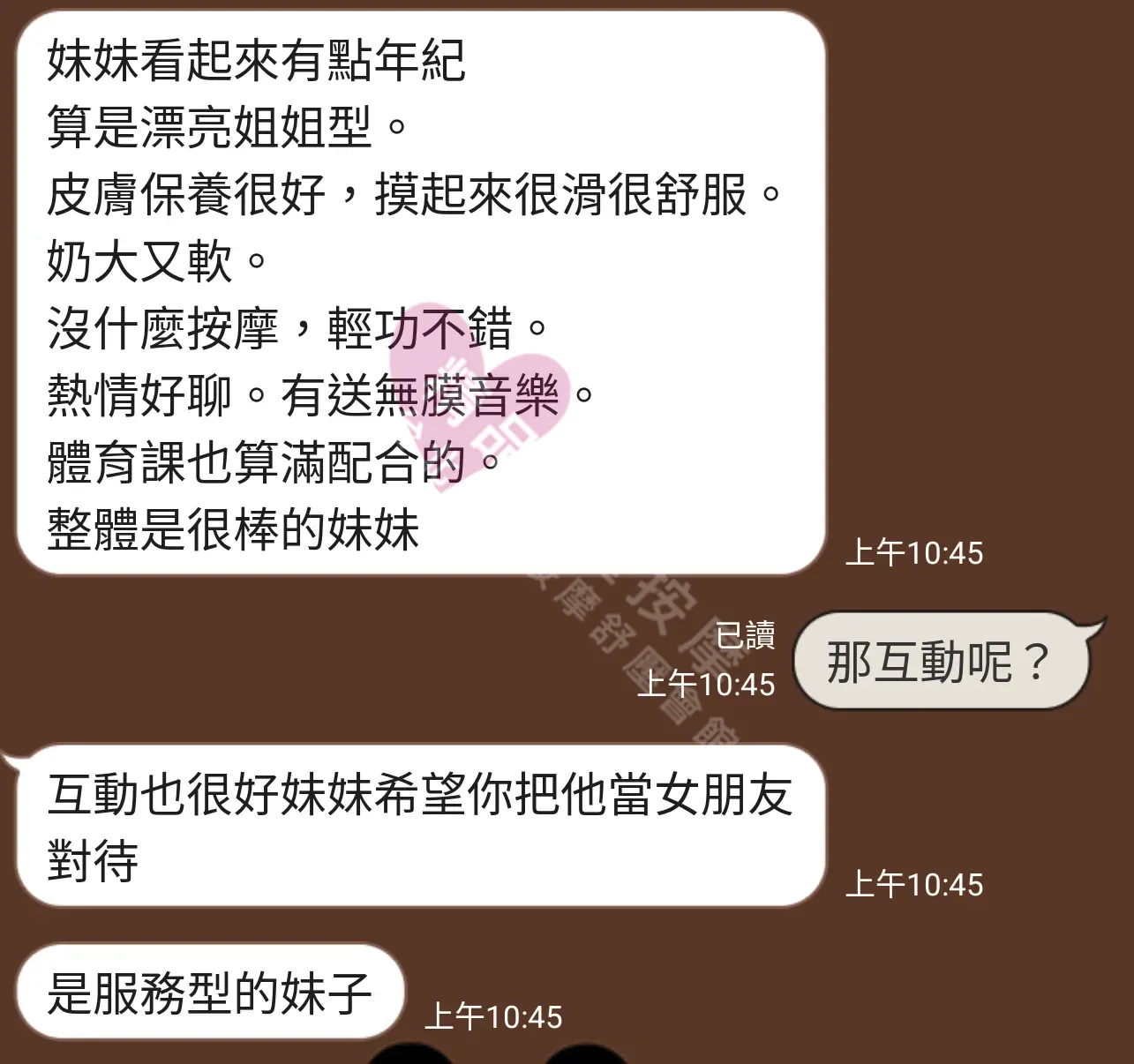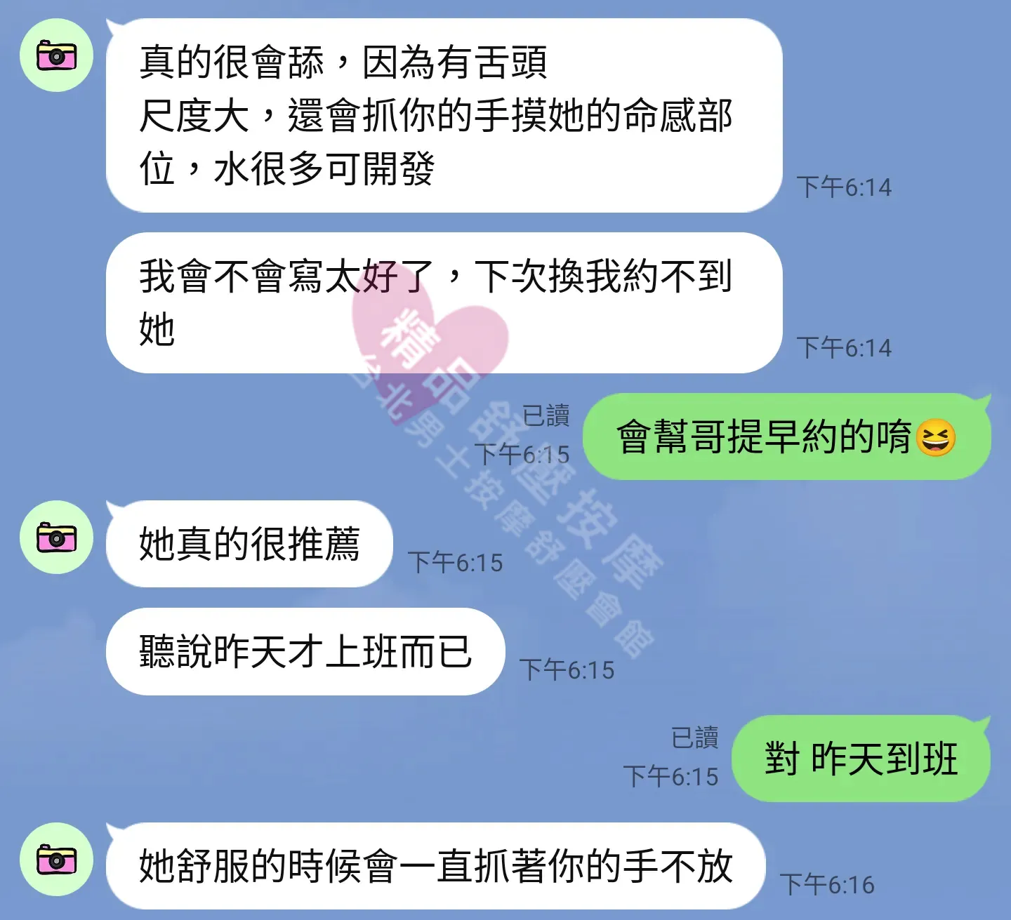 美容師都很有禮貌,先幫你背部按摩聊聊天,前戲會開始調情輕功,再來就是重點部位的加強。如果預算,也可以跟美容師聊聊加值服務,放心問都有機會。精品舒壓期待每位客人每次來舒壓都有個Happy Ending!