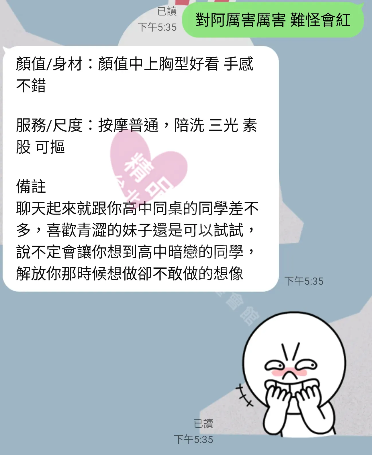 美容師都很有禮貌,先幫你背部按摩聊聊天,前戲會開始調情輕功,再來就是重點部位的加強。如果預算,也可以跟美容師聊聊加值服務,放心問都有機會。精品舒壓期待每位客人每次來舒壓都有個Happy Ending!