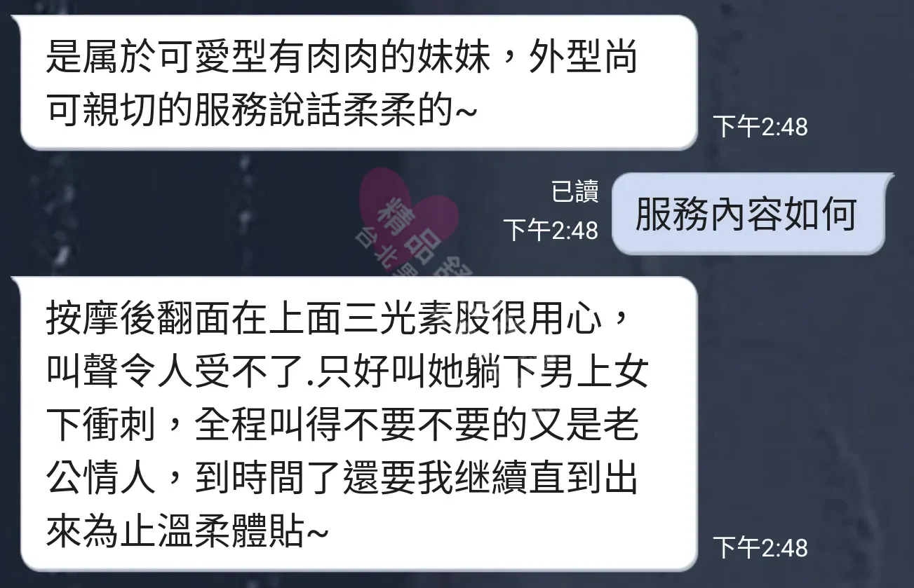 美容師都很有禮貌,先幫你背部按摩聊聊天,前戲會開始調情輕功,再來就是重點部位的加強。如果預算,也可以跟美容師聊聊加值服務,放心問都有機會。精品舒壓期待每位客人每次來舒壓都有個Happy Ending!
