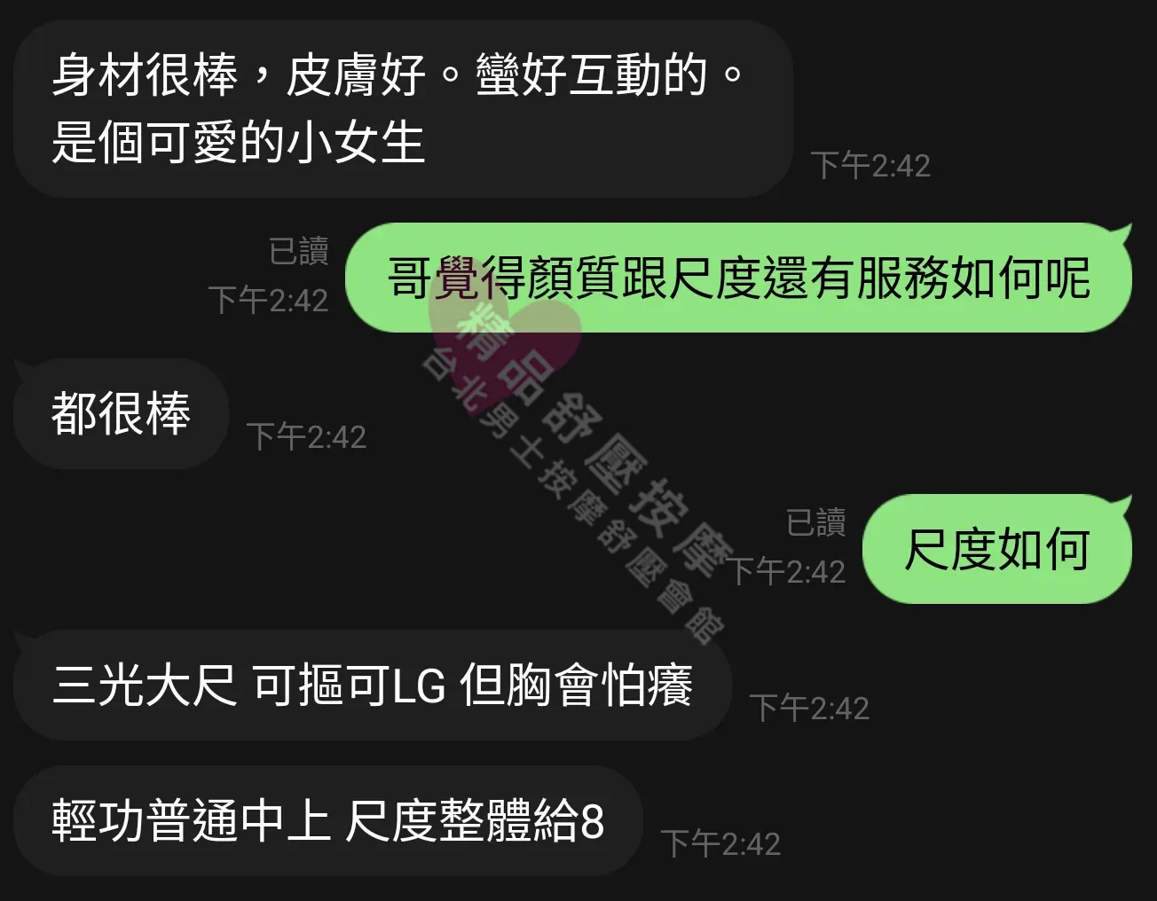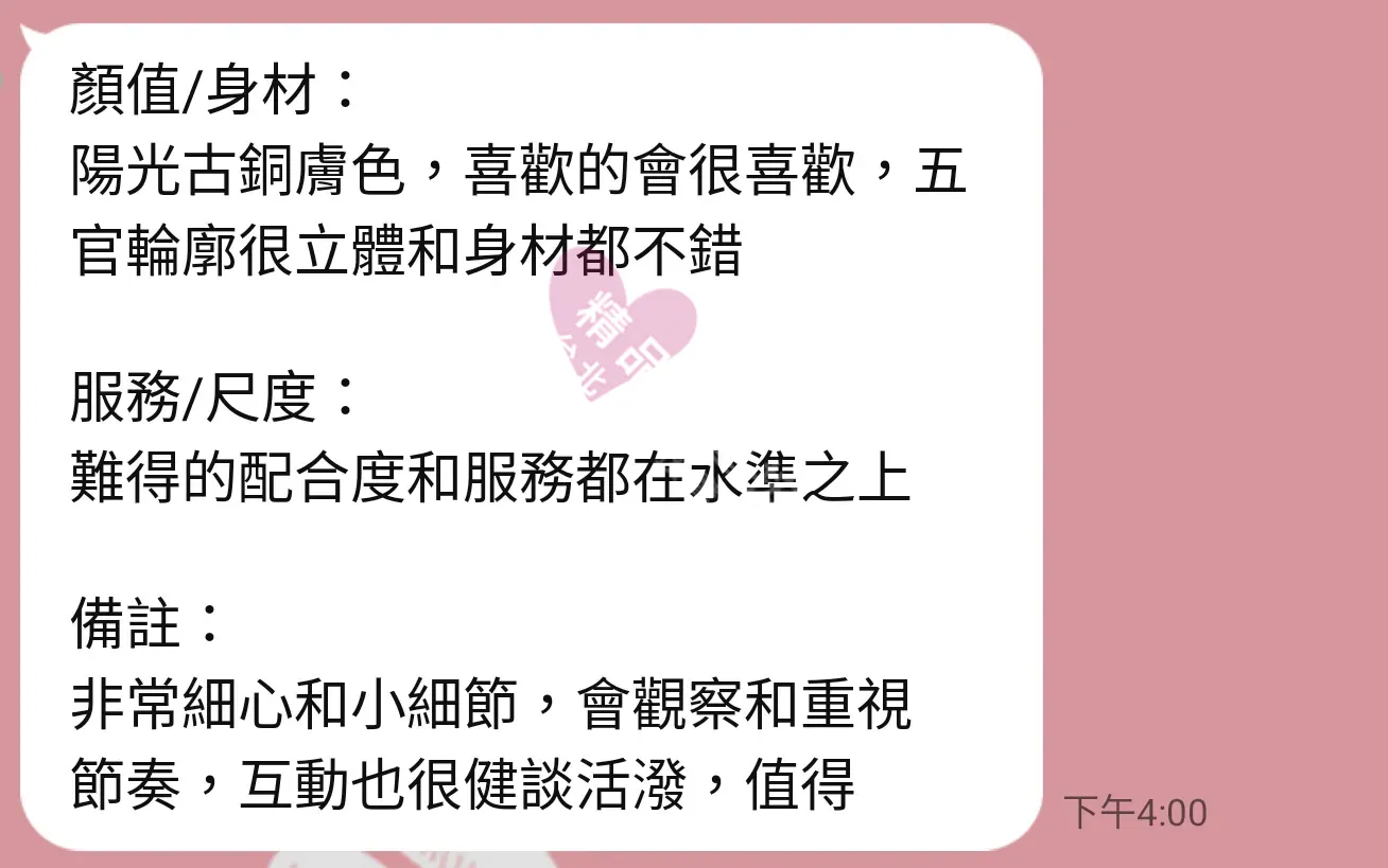 美容師都很有禮貌,先幫你背部按摩聊聊天,前戲會開始調情輕功,再來就是重點部位的加強。如果預算,也可以跟美容師聊聊加值服務,放心問都有機會。精品舒壓期待每位客人每次來舒壓都有個Happy Ending!