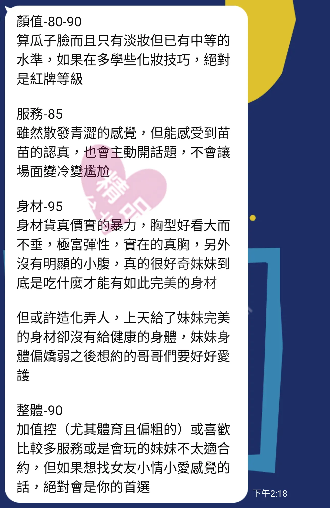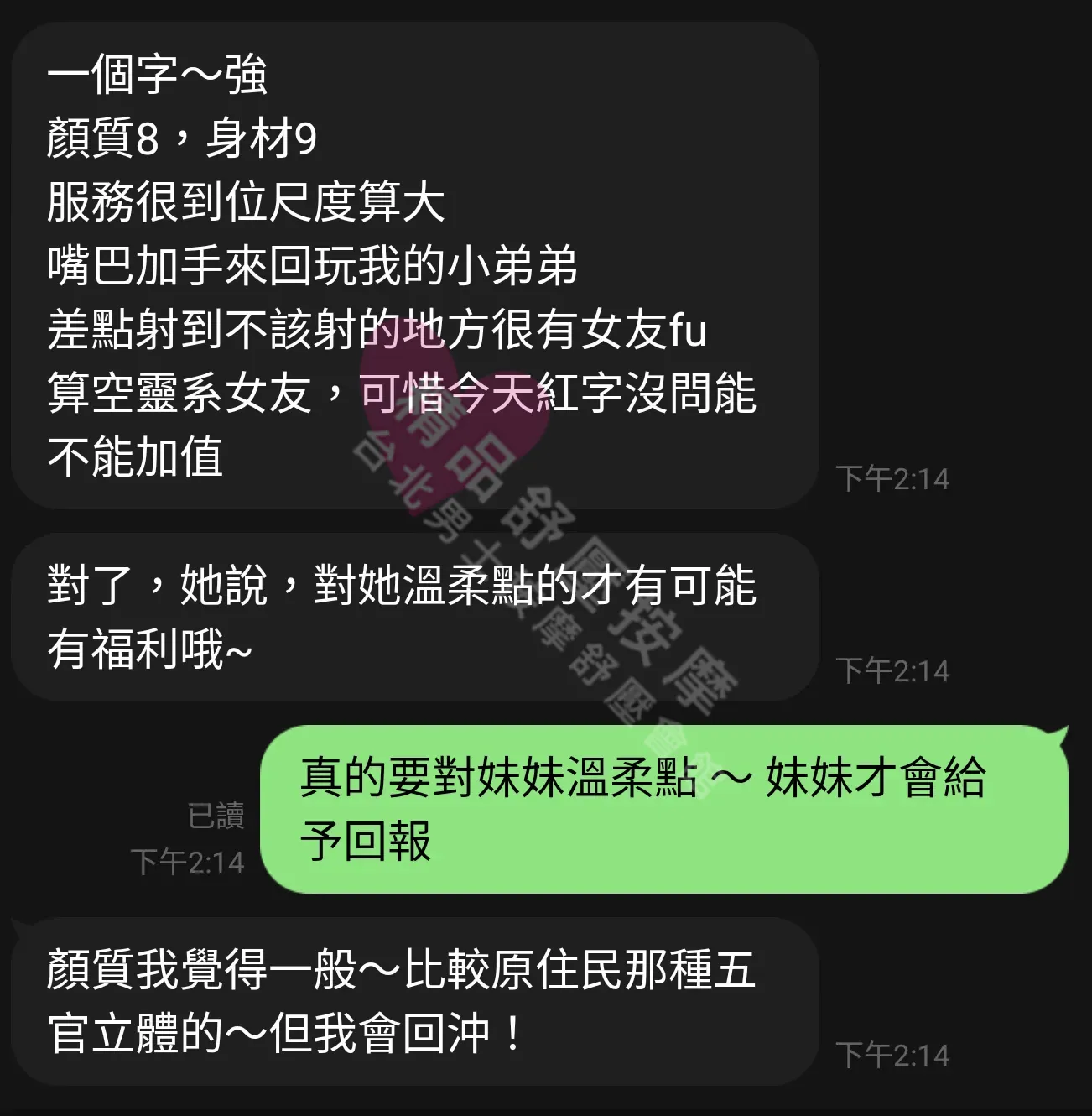 美容師都很有禮貌,先幫你背部按摩聊聊天,前戲會開始調情輕功,再來就是重點部位的加強。如果預算,也可以跟美容師聊聊加值服務,放心問都有機會。精品舒壓期待每位客人每次來舒壓都有個Happy Ending!
