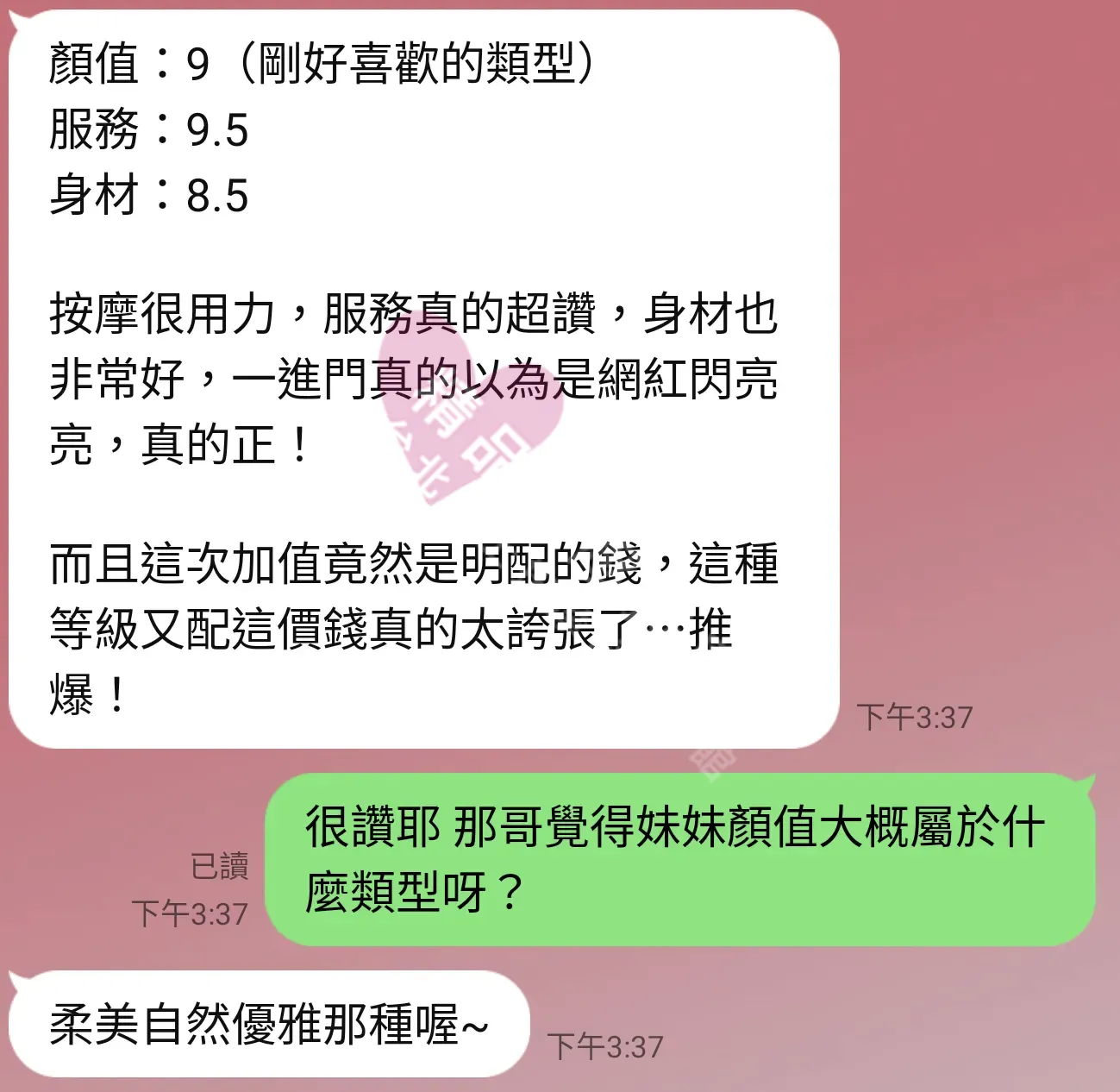 美容師都很有禮貌,先幫你背部按摩聊聊天,前戲會開始調情輕功,再來就是重點部位的加強。如果預算,也可以跟美容師聊聊加值服務,放心問都有機會。精品舒壓期待每位客人每次來舒壓都有個Happy Ending!