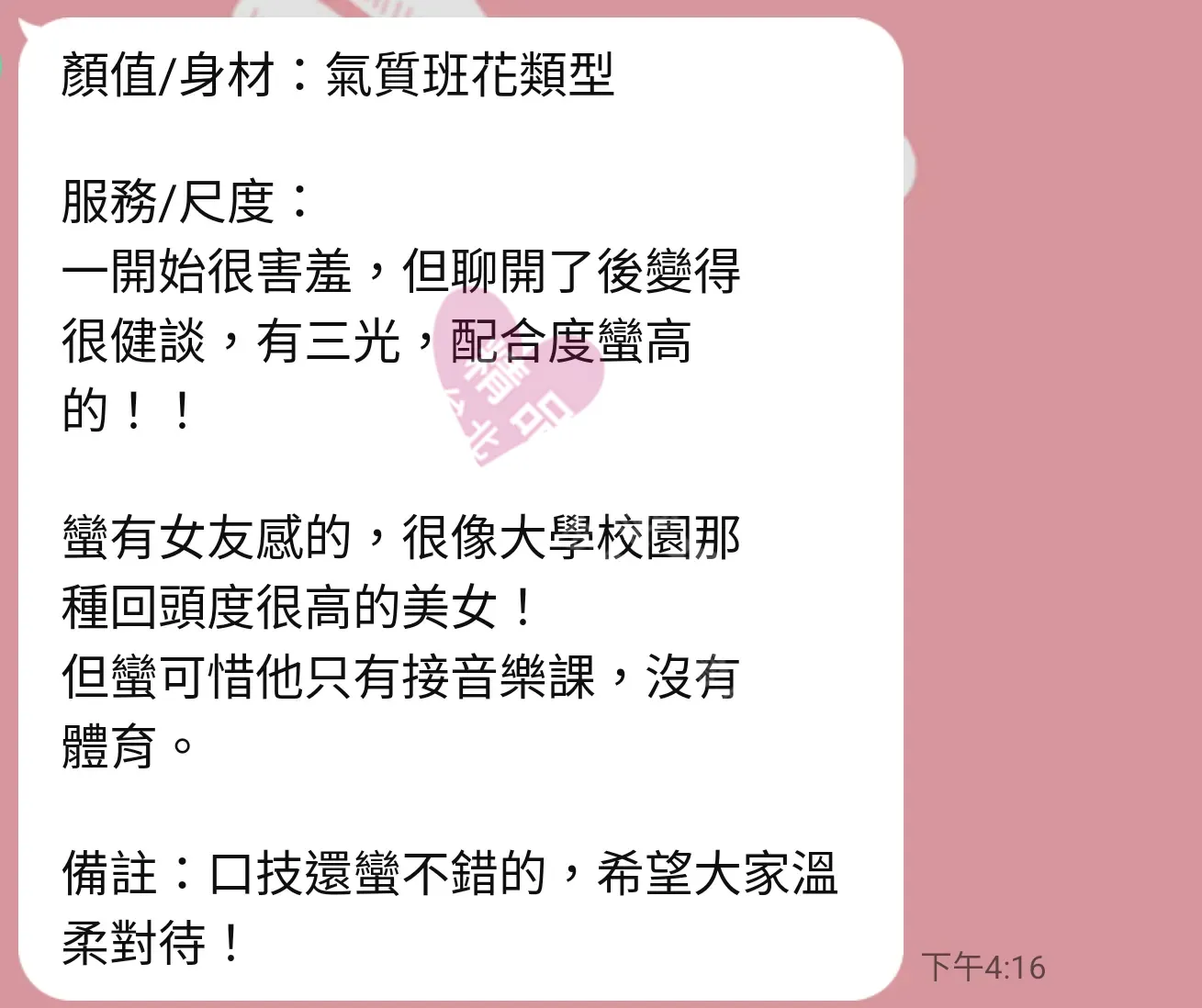 提前跟幹部預約,提出自己對美容師的要求,例如是大奶、長腿又或是小隻馬等等,通常幹部都會盡可能滿在你的要求,還可以選擇想要怎麼玩,是否可以加值更多的服務等等,這些都能通過幹部來提前預約實現。