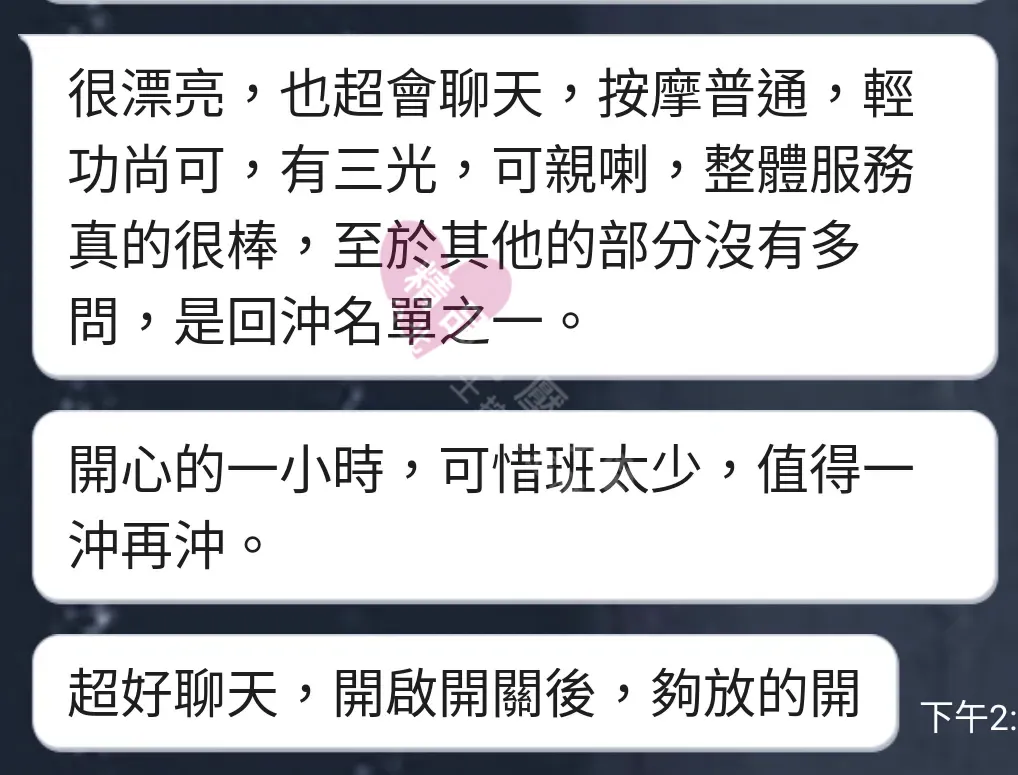 美容師都很有禮貌,先幫你背部按摩聊聊天,前戲會開始調情輕功,再來就是重點部位的加強。如果預算,也可以跟美容師聊聊加值服務,放心問都有機會。精品舒壓期待每位客人每次來舒壓都有個Happy Ending!