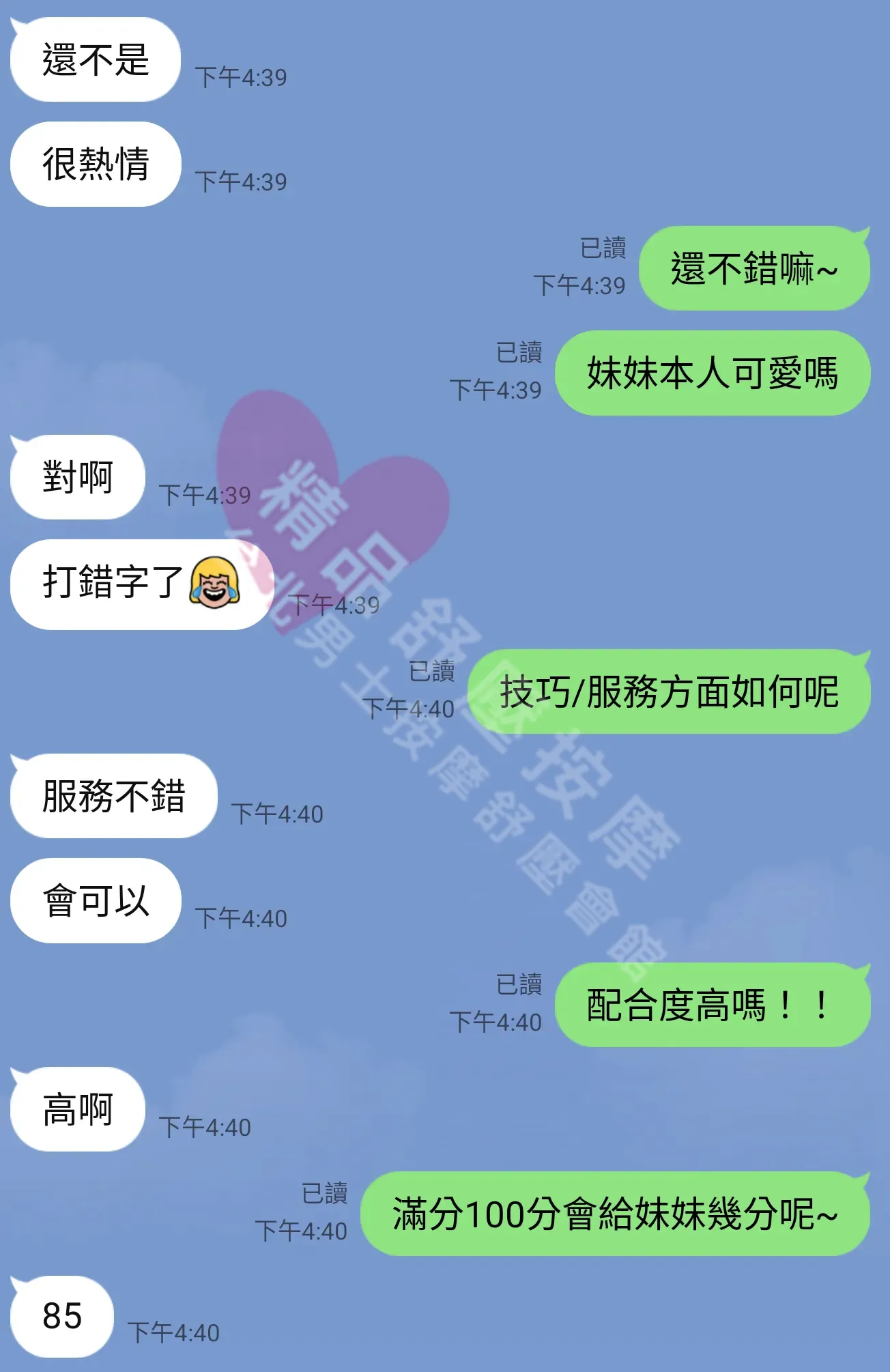 美容師都很有禮貌,先幫你背部按摩聊聊天,前戲會開始調情輕功,再來就是重點部位的加強。如果預算,也可以跟美容師聊聊加值服務,放心問都有機會。精品舒壓期待每位客人每次來舒壓都有個Happy Ending!