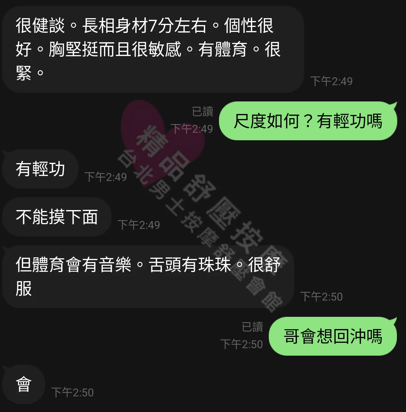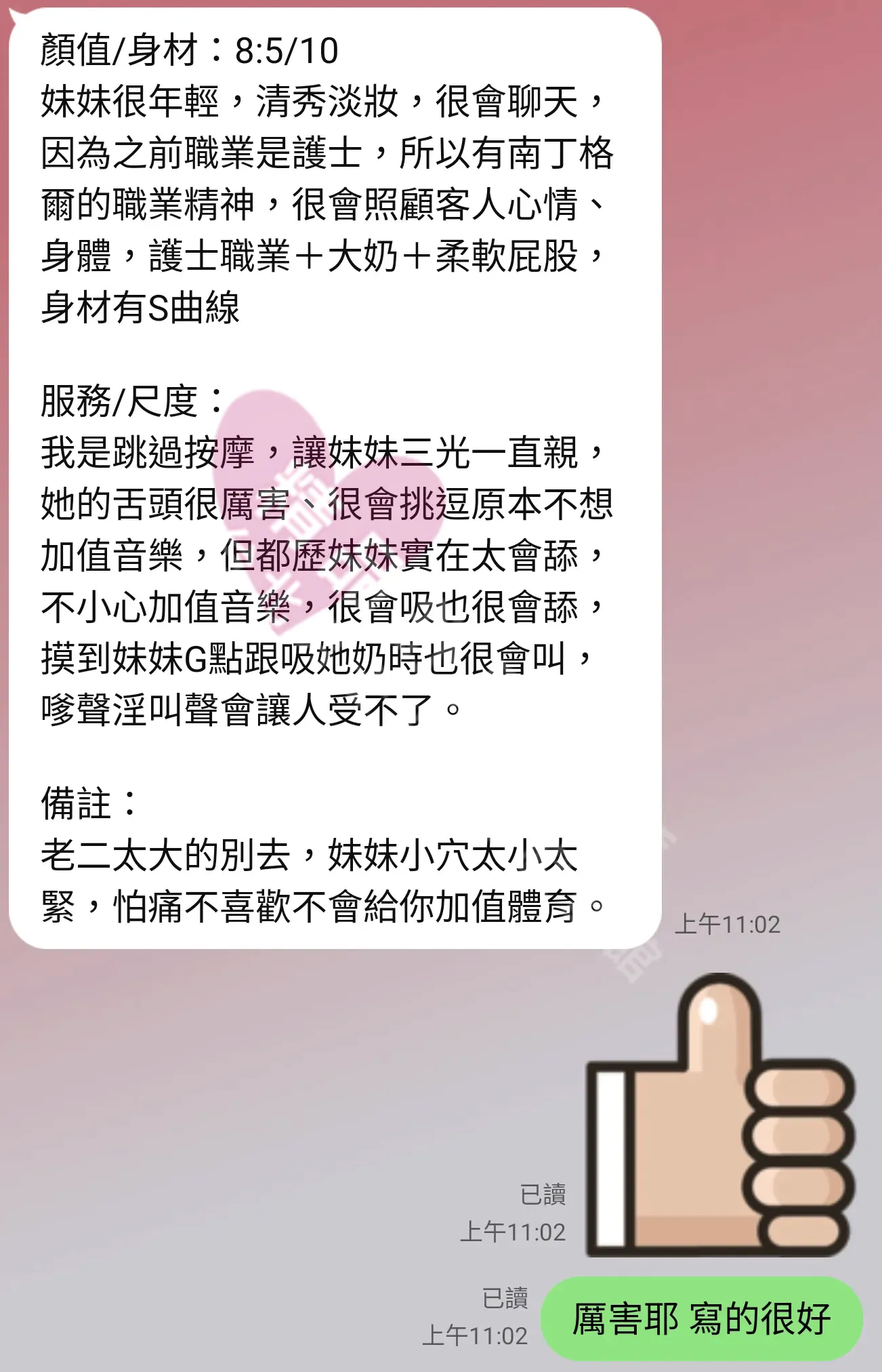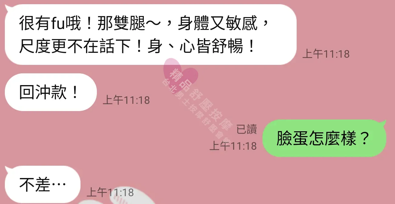 美容師都很有禮貌,先幫你背部按摩聊聊天,前戲會開始調情輕功,再來就是重點部位的加強。如果預算,也可以跟美容師聊聊加值服務,放心問都有機會。精品舒壓期待每位客人每次來舒壓都有個Happy Ending!