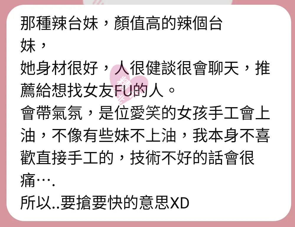 提前跟幹部預約,提出自己對美容師的要求,例如是大奶、長腿又或是小隻馬等等,通常幹部都會盡可能滿在你的要求,還可以選擇想要怎麼玩,是否可以加值更多的服務等等,這些都能通過幹部來提前預約實現。