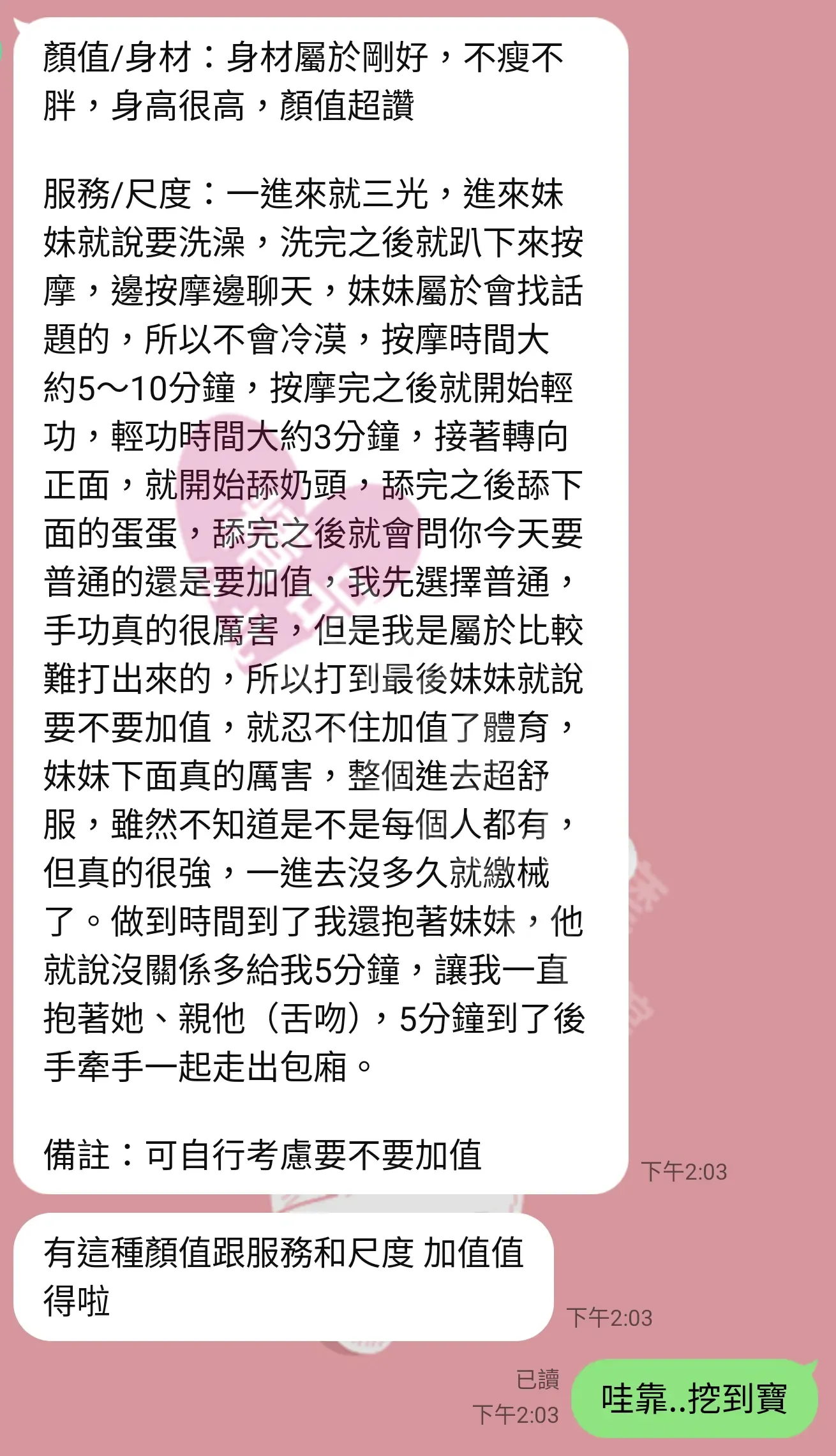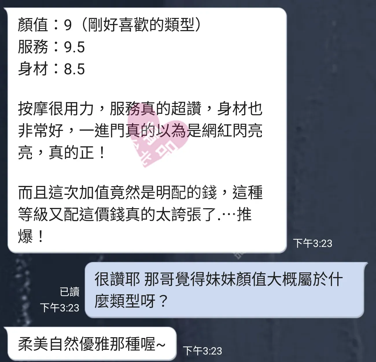 美容師都很有禮貌,先幫你背部按摩聊聊天,前戲會開始調情輕功,再來就是重點部位的加強。如果預算,也可以跟美容師聊聊加值服務,放心問都有機會。精品舒壓期待每位客人每次來舒壓都有個Happy Ending!