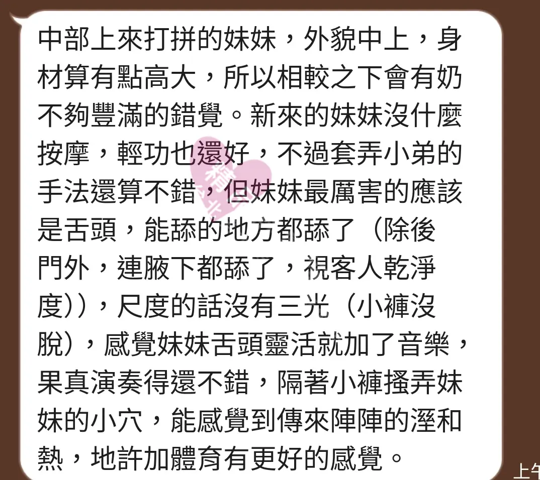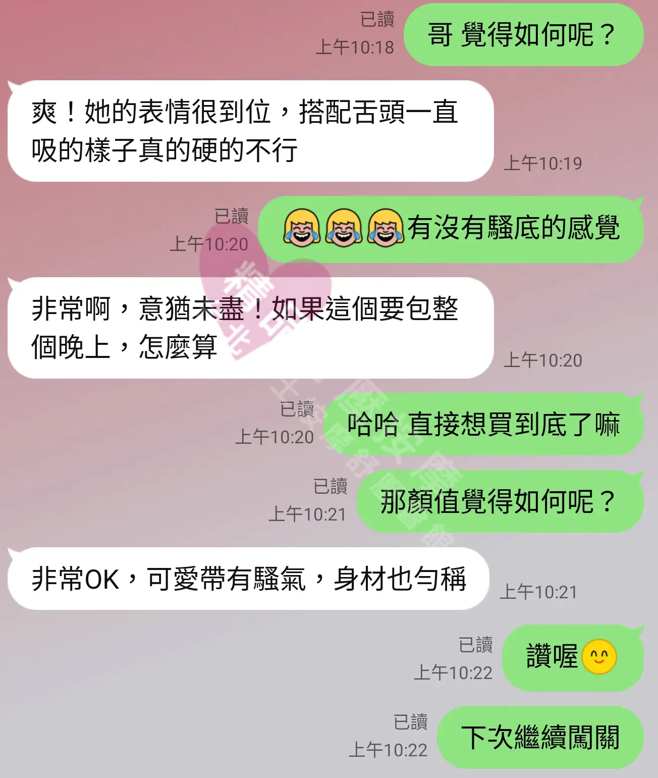 美容師都很有禮貌,先幫你背部按摩聊聊天,前戲會開始調情輕功,再來就是重點部位的加強。如果預算,也可以跟美容師聊聊加值服務,放心問都有機會。精品舒壓期待每位客人每次來舒壓都有個Happy Ending!