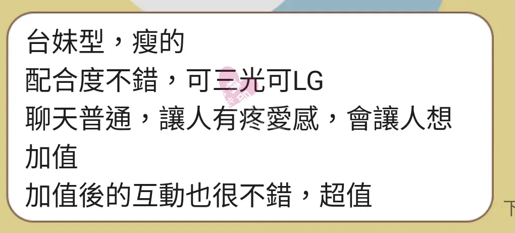 提前跟幹部預約,提出自己對美容師的要求,例如是大奶、長腿又或是小隻馬等等,通常幹部都會盡可能滿在你的要求,還可以選擇想要怎麼玩,是否可以加值更多的服務等等,這些都能通過幹部來提前預約實現。