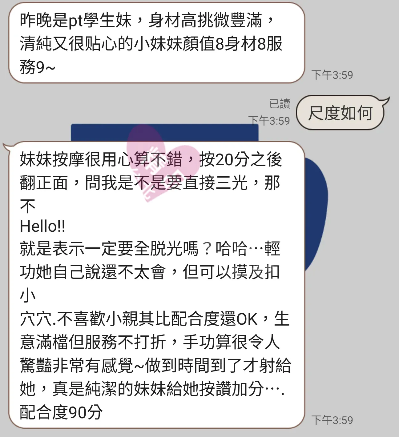 美容師都很有禮貌,先幫你背部按摩聊聊天,前戲會開始調情輕功,再來就是重點部位的加強。如果預算,也可以跟美容師聊聊加值服務,放心問都有機會。精品舒壓期待每位客人每次來舒壓都有個Happy Ending!