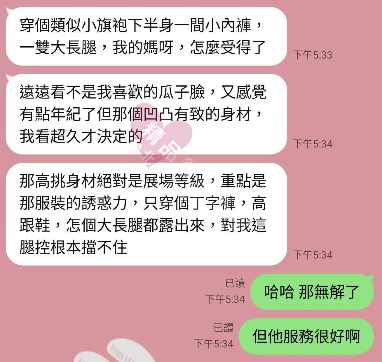 美容師都很有禮貌,先幫你背部按摩聊聊天,前戲會開始調情輕功,再來就是重點部位的加強。如果預算,也可以跟美容師聊聊加值服務,放心問都有機會。精品舒壓期待每位客人每次來舒壓都有個Happy Ending!