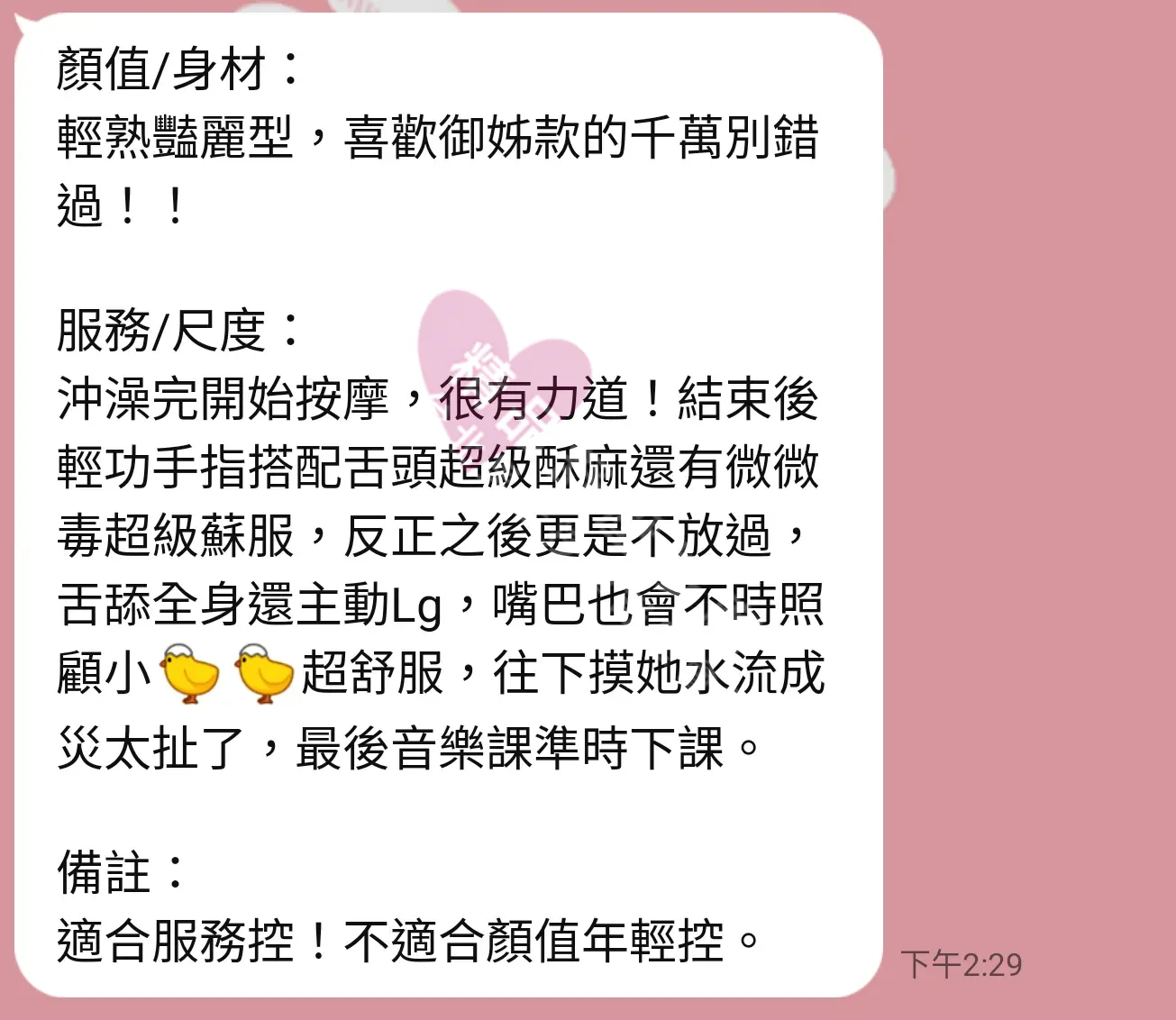 美容師都很有禮貌,先幫你背部按摩聊聊天,前戲會開始調情輕功,再來就是重點部位的加強。如果預算,也可以跟美容師聊聊加值服務,放心問都有機會。精品舒壓期待每位客人每次來舒壓都有個Happy Ending!